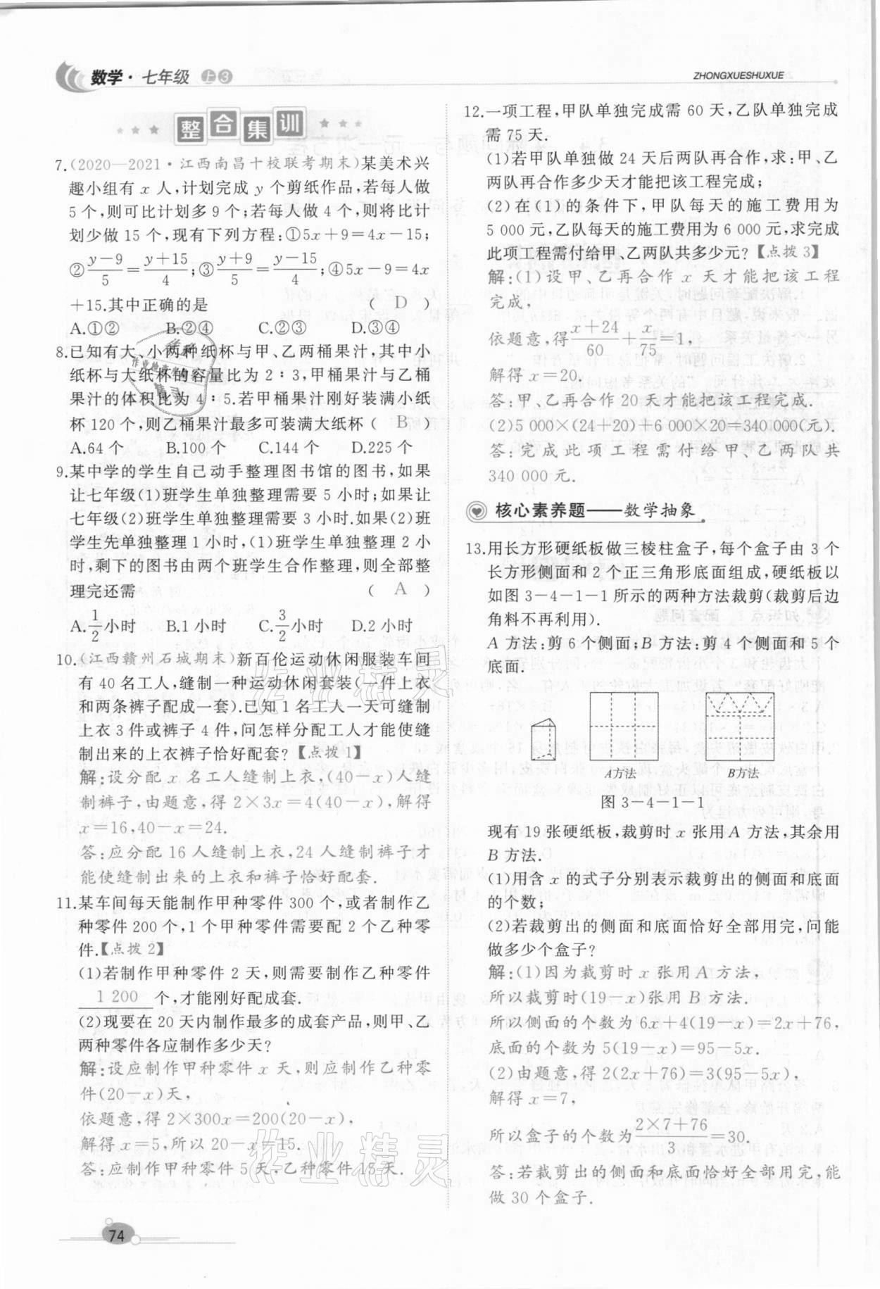 注:目前有些书本章节名称可能整理的还不是很完善,但都是按照顺序排列的,请同学们按照顺序仔细查找。练习册 2021年A加优化作业本七年级数学上册人教版江西专版 答案主要是用来给同学们做完题方便对答案用的,请勿直接抄袭。