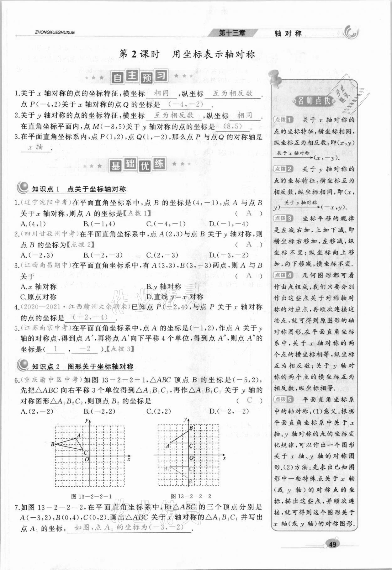 注:目前有些书本章节名称可能整理的还不是很完善,但都是按照顺序排列的,请同学们按照顺序仔细查找。练习册 2021年A加优化作业本八年级数学上册人教版江西专版 答案主要是用来给同学们做完题方便对答案用的,请勿直接抄袭。