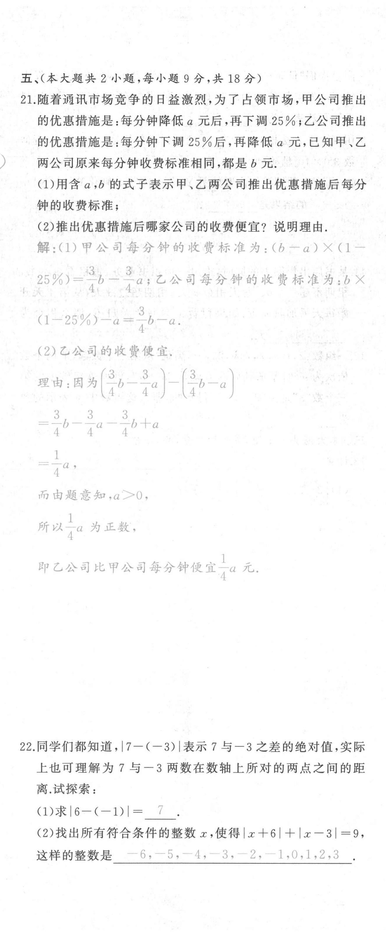 2021年A加优化作业本七年级数学上册人教版江西专版