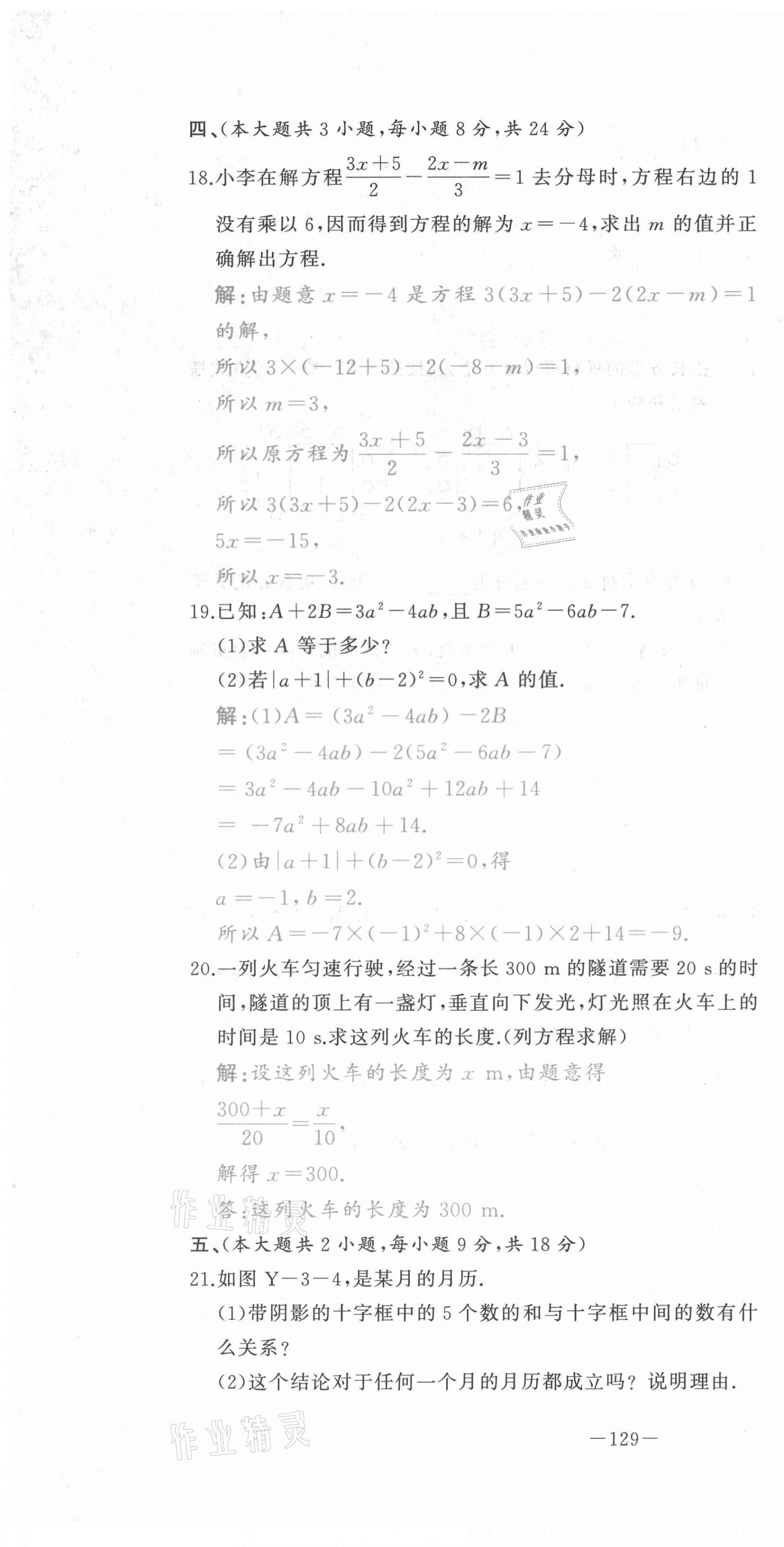 2021年A加优化作业本七年级数学上册人教版江西专版