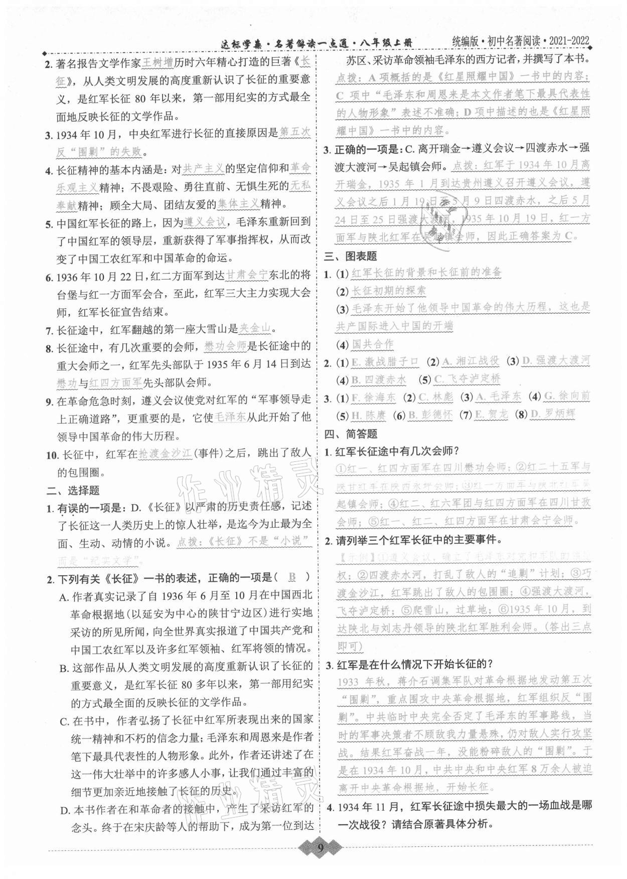 注:目前有些书本章节名称可能整理的还不是很完善,但都是按照顺序排列的,请同学们按照顺序仔细查找。练习册 2021年达标学案名著解读一点通八年级语文上册统编版 答案主要是用来给同学们做完题方便对答案用的,请勿直接抄袭。