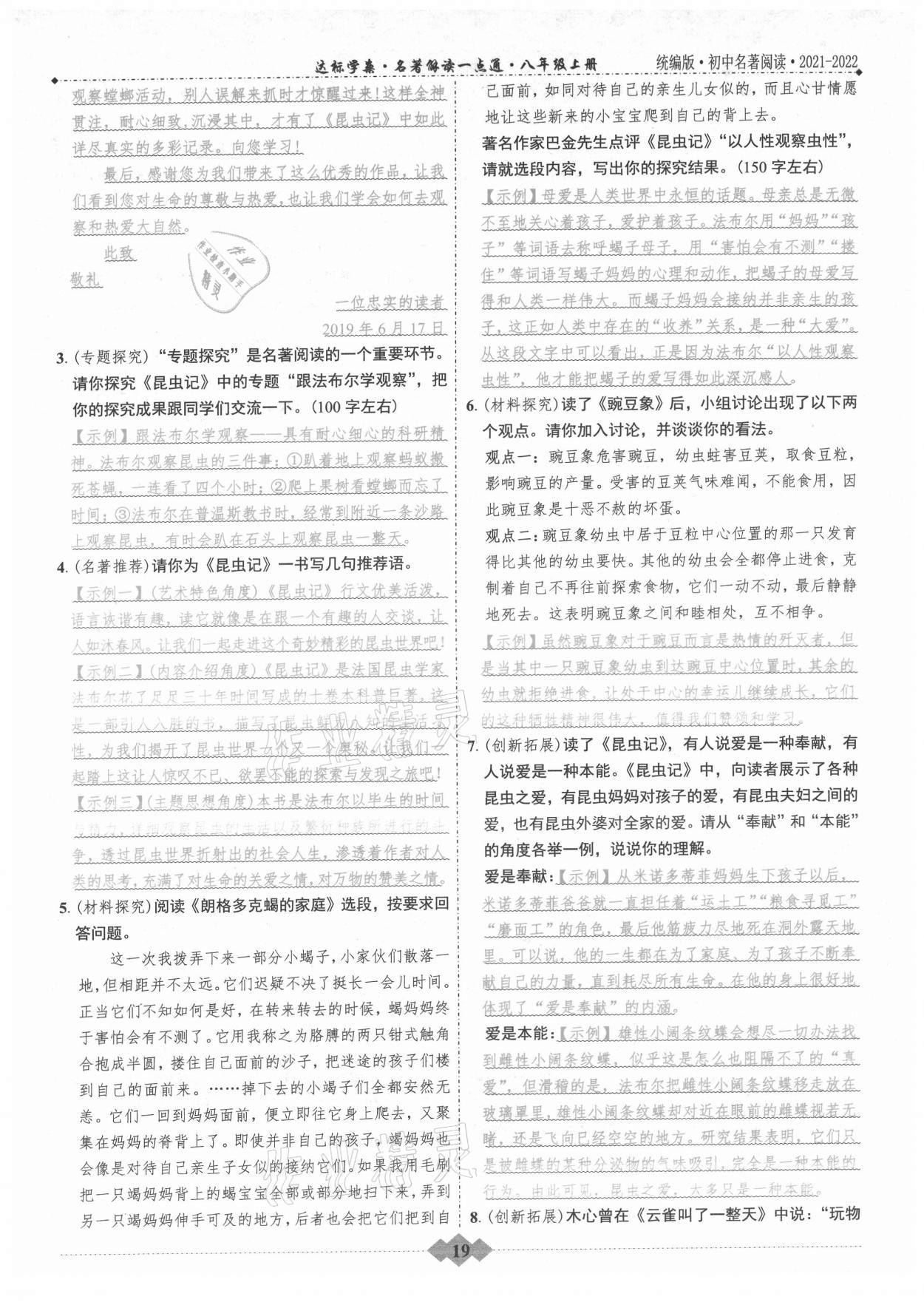 2021年达标学案名著解读一点通八年级语文上册统编版