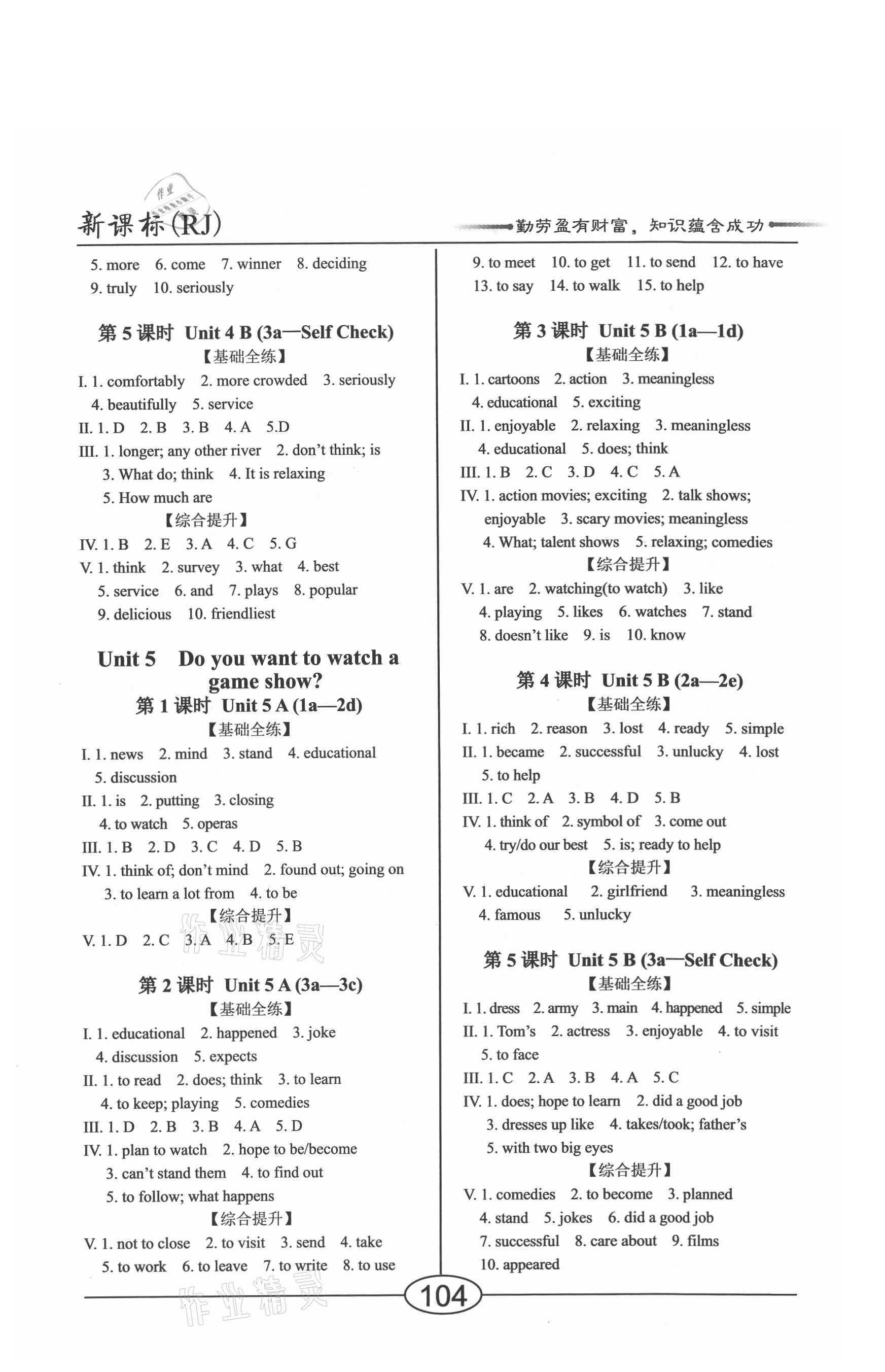 注:目前有些书本章节名称可能整理的还不是很完善,但都是按照顺序排列的,请同学们按照顺序仔细查找。练习册 2021年学考2加1八年级英语上册人教版 答案主要是用来给同学们做完题方便对答案用的,请勿直接抄袭。