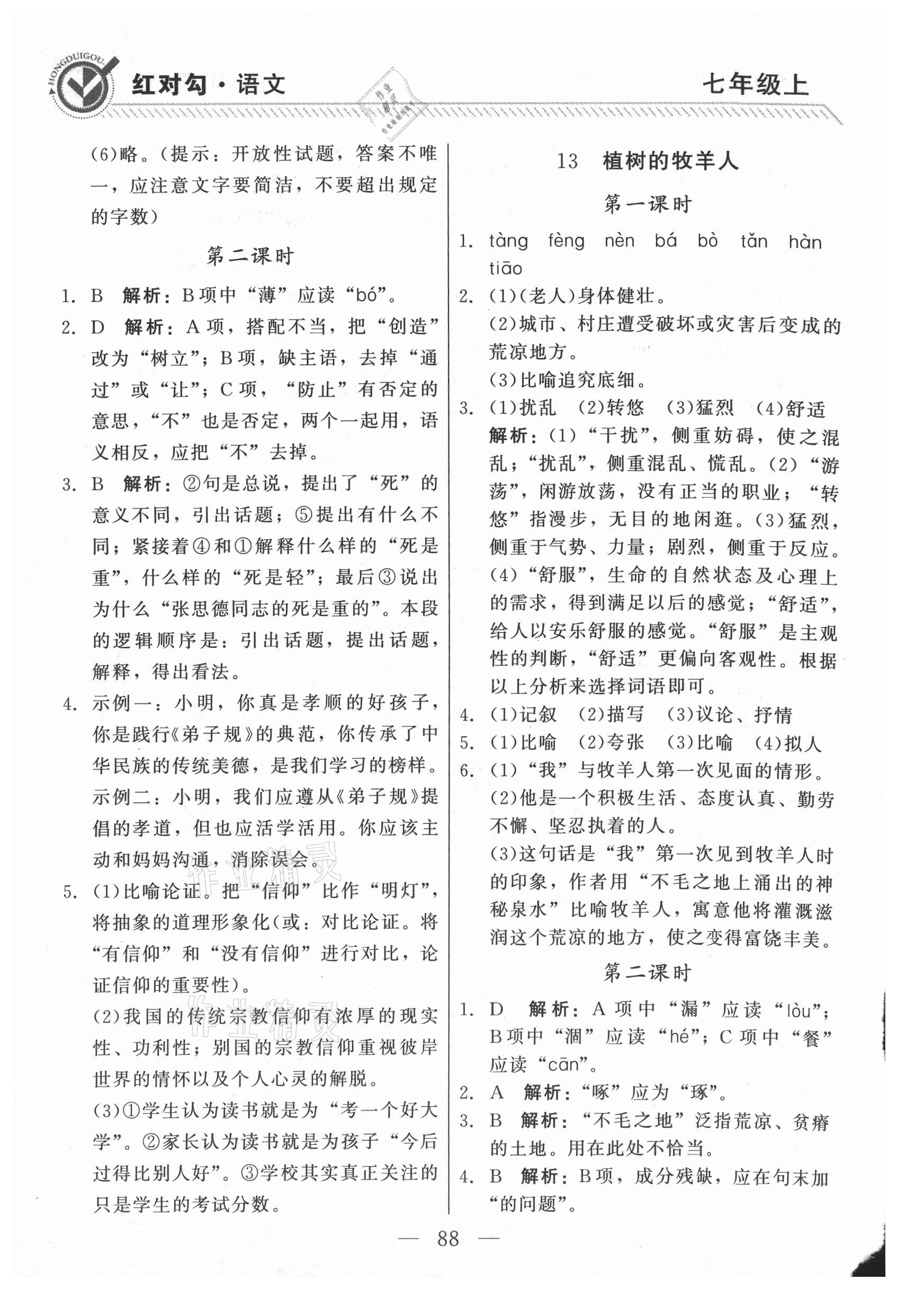 注:目前有些书本章节名称可能整理的还不是很完善,但都是按照顺序排列的,请同学们按照顺序仔细查找。练习册 2021年红对勾45分钟作业与单元评估七年级语文上册人教版 答案主要是用来给同学们做完题方便对答案用的,请勿直接抄袭。