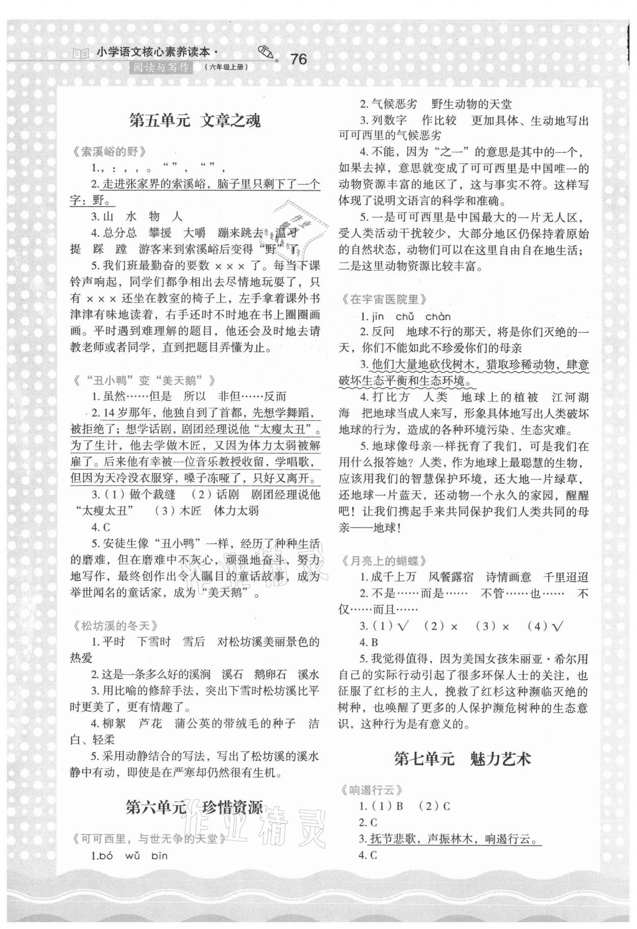 注:目前有些书本章节名称可能整理的还不是很完善,但都是按照顺序排列的,请同学们按照顺序仔细查找。练习册 2021年核心素养读本阅读与写作六年级语文上册人教版 答案主要是用来给同学们做完题方便对答案用的,请勿直接抄袭。