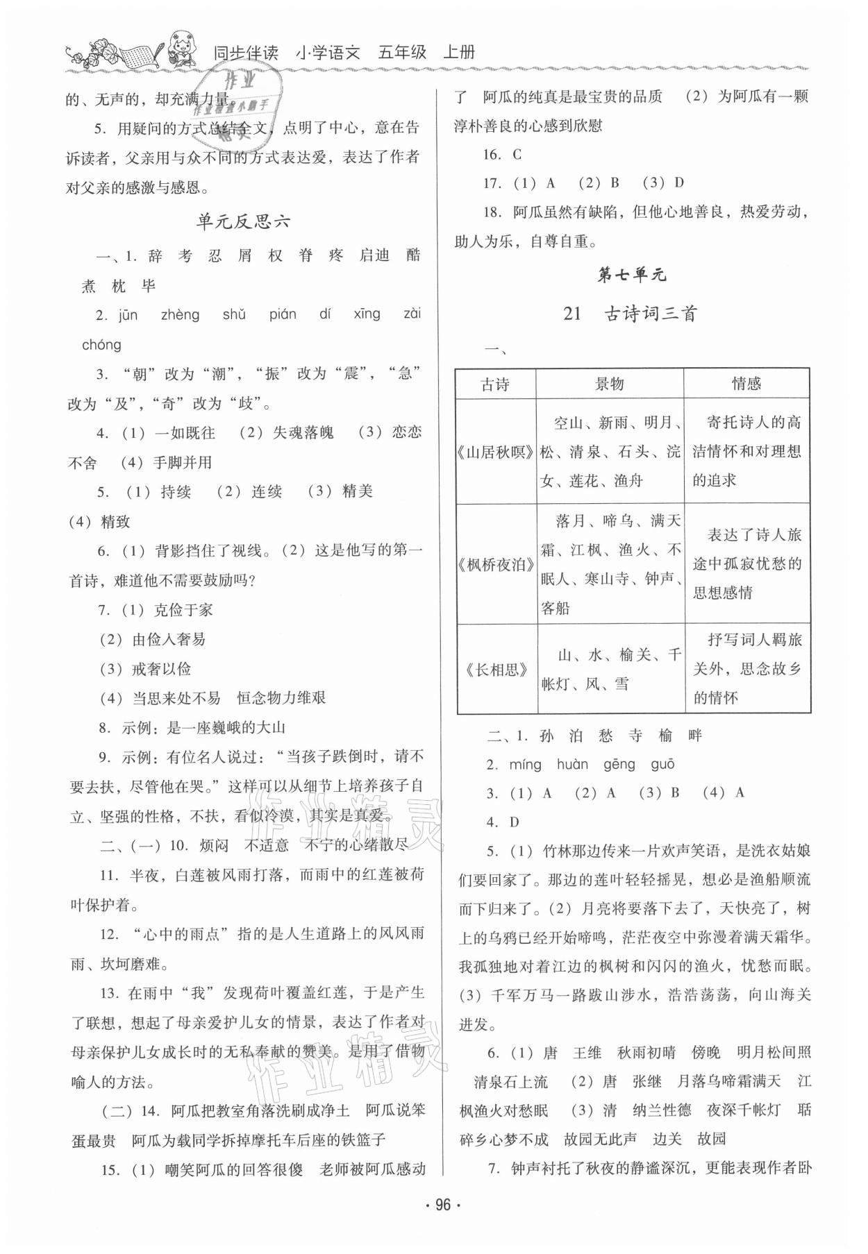 注:目前有些书本章节名称可能整理的还不是很完善,但都是按照顺序排列的,请同学们按照顺序仔细查找。练习册 2021年同步伴读小学语文五年级上册人教版 答案主要是用来给同学们做完题方便对答案用的,请勿直接抄袭。