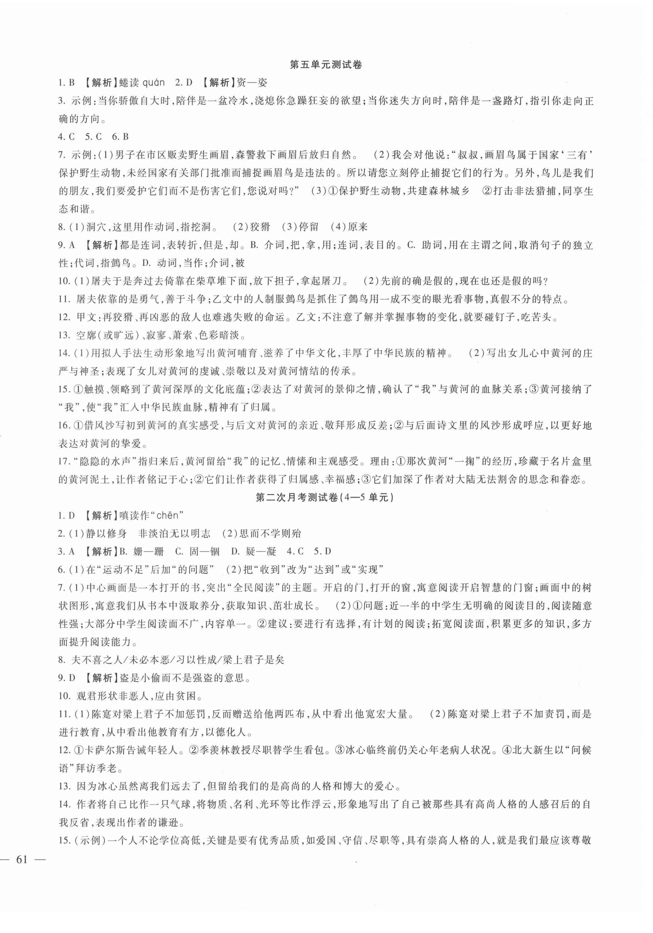注:目前有些书本章节名称可能整理的还不是很完善,但都是按照顺序排列的,请同学们按照顺序仔细查找。练习册 2021年华夏一卷通七年级语文上册人教版 答案主要是用来给同学们做完题方便对答案用的,请勿直接抄袭。