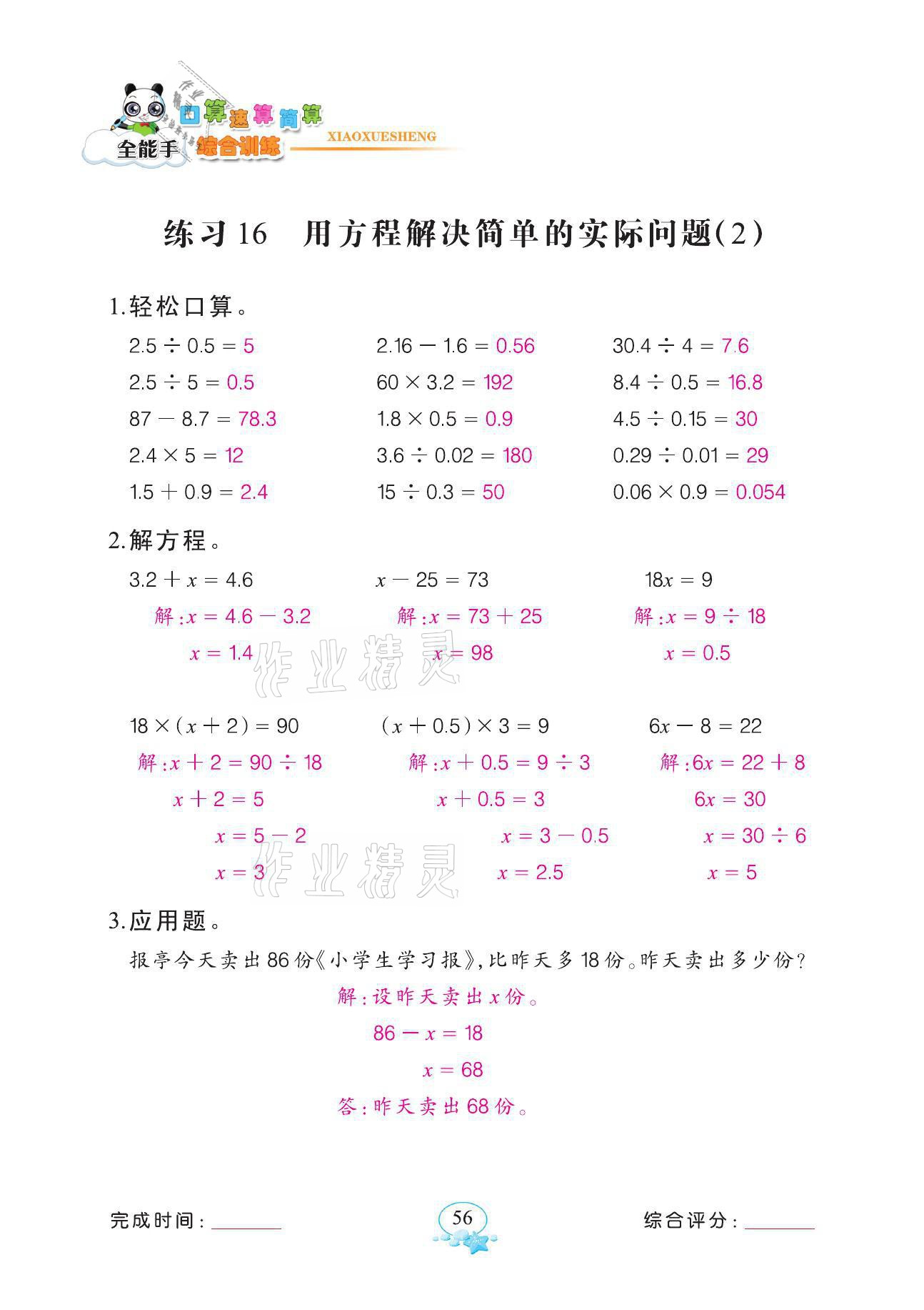 注:目前有些书本章节名称可能整理的还不是很完善,但都是按照顺序排列的,请同学们按照顺序仔细查找。练习册 2021年全能手同步计算五年级数学上册人教版 答案主要是用来给同学们做完题方便对答案用的,请勿直接抄袭。