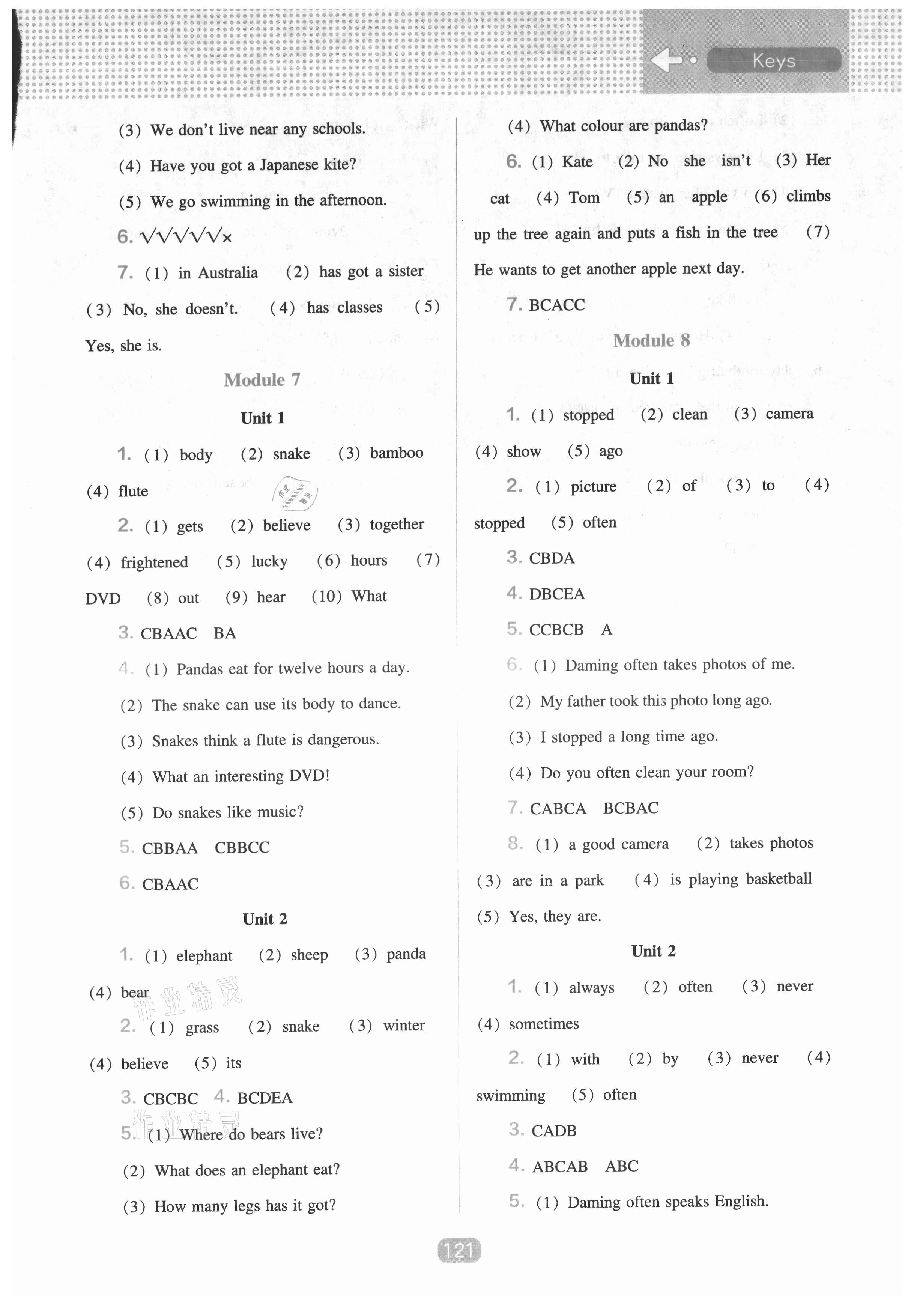 注:目前有些书本章节名称可能整理的还不是很完善,但都是按照顺序排列的,请同学们按照顺序仔细查找。练习册 2021年新课程能力培养六年级英语上册外研版 答案主要是用来给同学们做完题方便对答案用的,请勿直接抄袭。