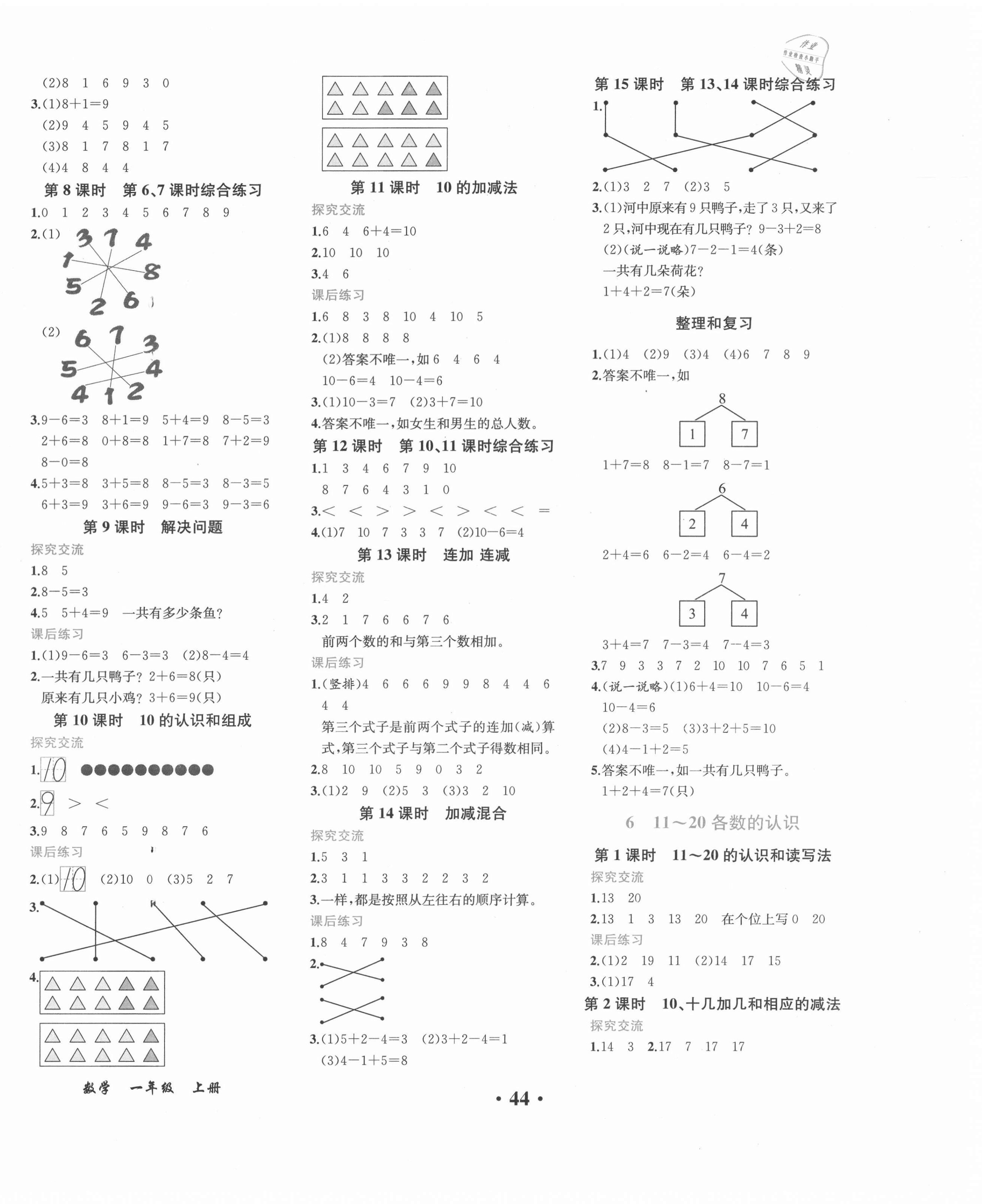 注:目前有些书本章节名称可能整理的还不是很完善,但都是按照顺序排列的,请同学们按照顺序仔细查找。练习册 2021年胜券在握同步解析与测评一年级数学上册人教版重庆专版 答案主要是用来给同学们做完题方便对答案用的,请勿直接抄袭。