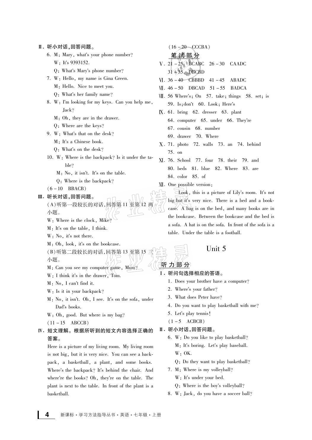 注:目前有些书本章节名称可能整理的还不是很完善,但都是按照顺序排列的,请同学们按照顺序仔细查找。练习册 2021年新课标学习方法指导丛书七年级英语上册人教版 答案主要是用来给同学们做完题方便对答案用的,请勿直接抄袭。