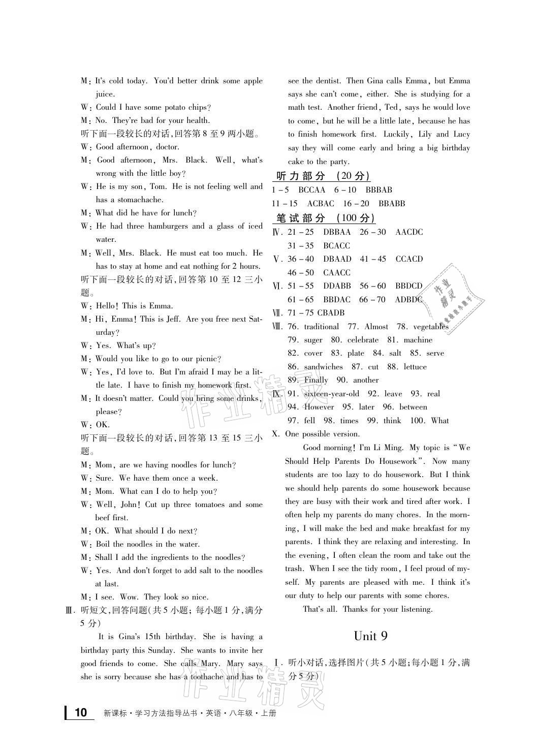注:目前有些书本章节名称可能整理的还不是很完善,但都是按照顺序排列的,请同学们按照顺序仔细查找。练习册 2021年新课标学习方法指导丛书八年级英语上册人教版 答案主要是用来给同学们做完题方便对答案用的,请勿直接抄袭。