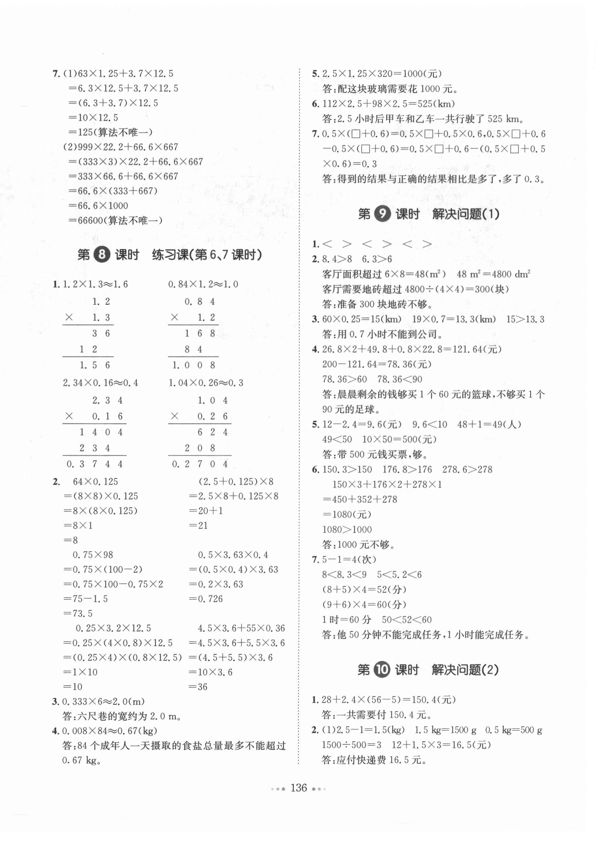 《2021年我爱写作业五年级数学上册人教版江西专版》