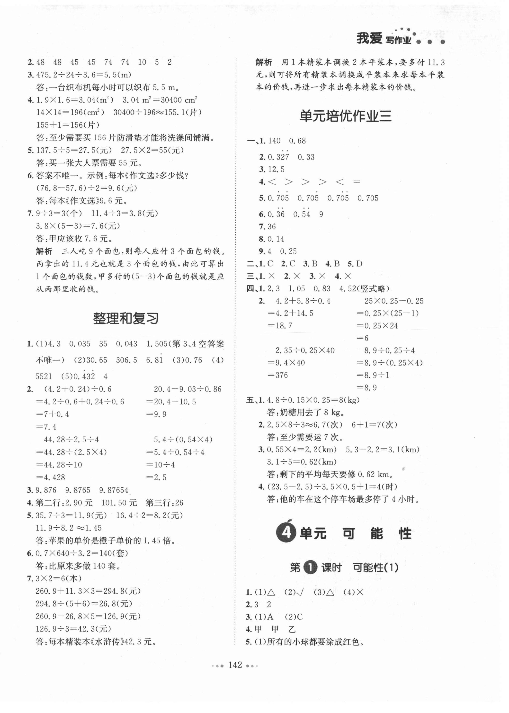 注:目前有些书本章节名称可能整理的还不是很完善,但都是按照顺序排列的,请同学们按照顺序仔细查找。练习册 2021年我爱写作业五年级数学上册人教版江西专版 答案主要是用来给同学们做完题方便对答案用的,请勿直接抄袭。