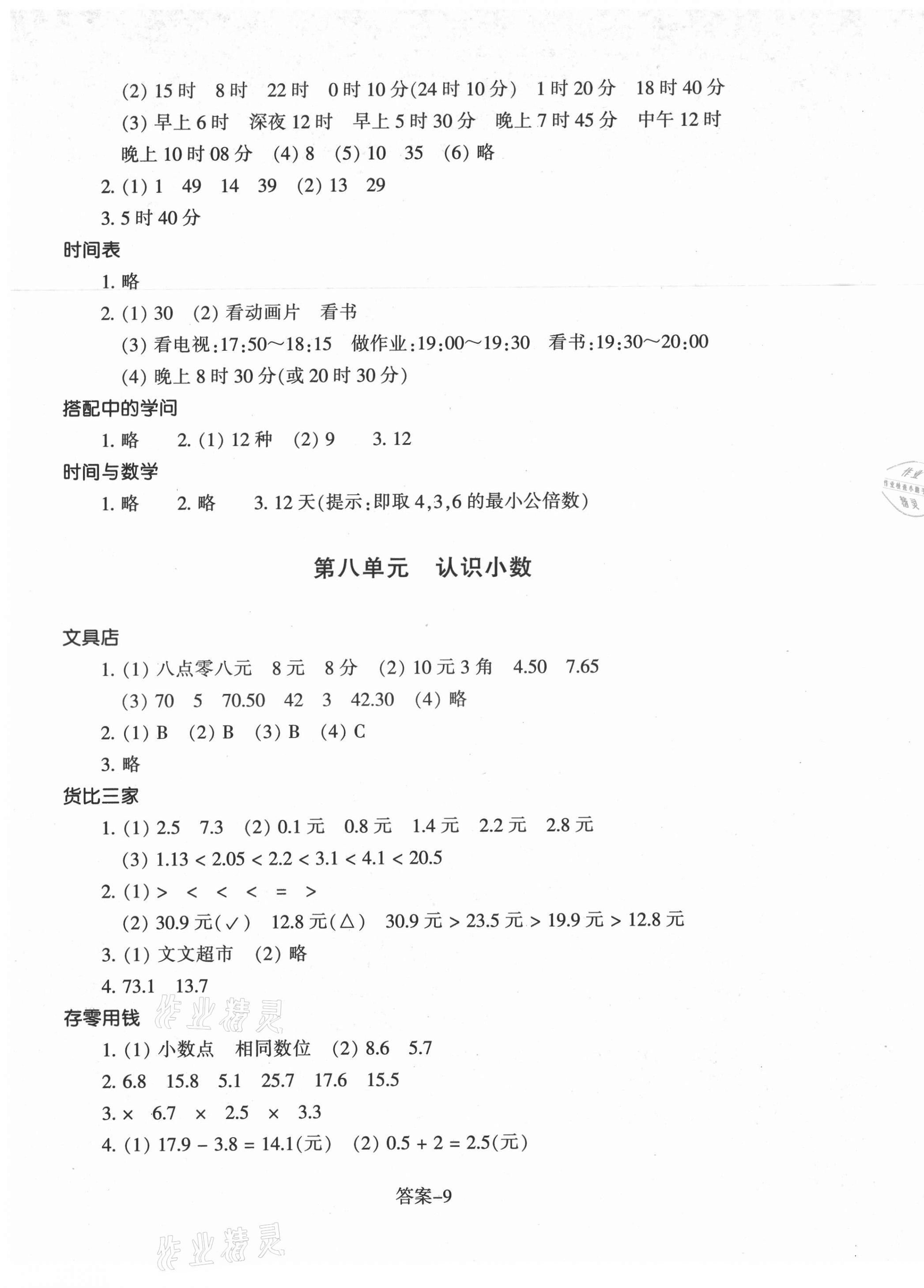 注:目前有些书本章节名称可能整理的还不是很完善,但都是按照顺序排列的,请同学们按照顺序仔细查找。练习册 2021年每课一练三年级数学上册北师大版浙江少年儿童出版社 答案主要是用来给同学们做完题方便对答案用的,请勿直接抄袭。
