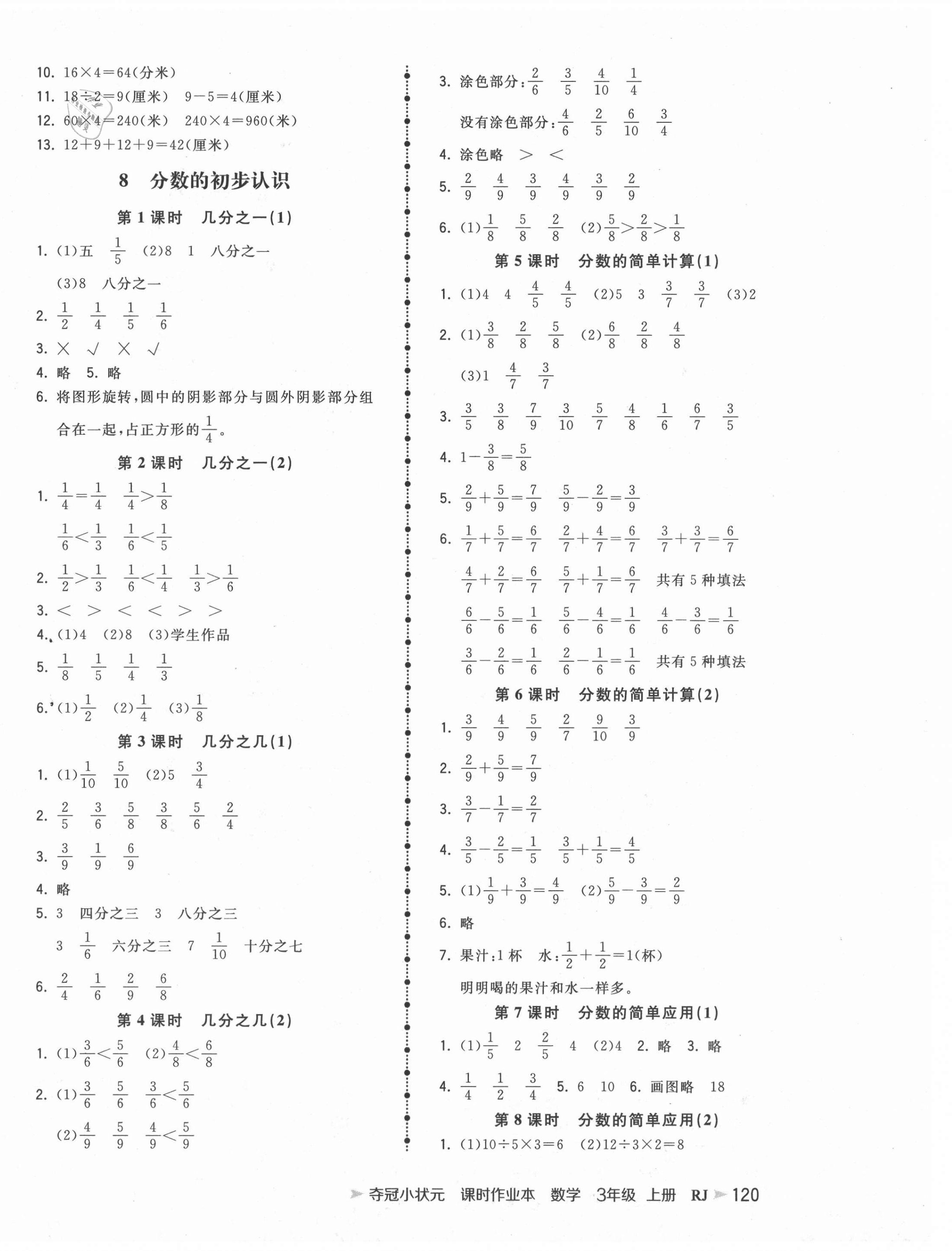 注:目前有些书本章节名称可能整理的还不是很完善,但都是按照顺序排列的,请同学们按照顺序仔细查找。练习册 2021年夺冠小状元课时作业本三年级数学上册人教版 答案主要是用来给同学们做完题方便对答案用的,请勿直接抄袭。