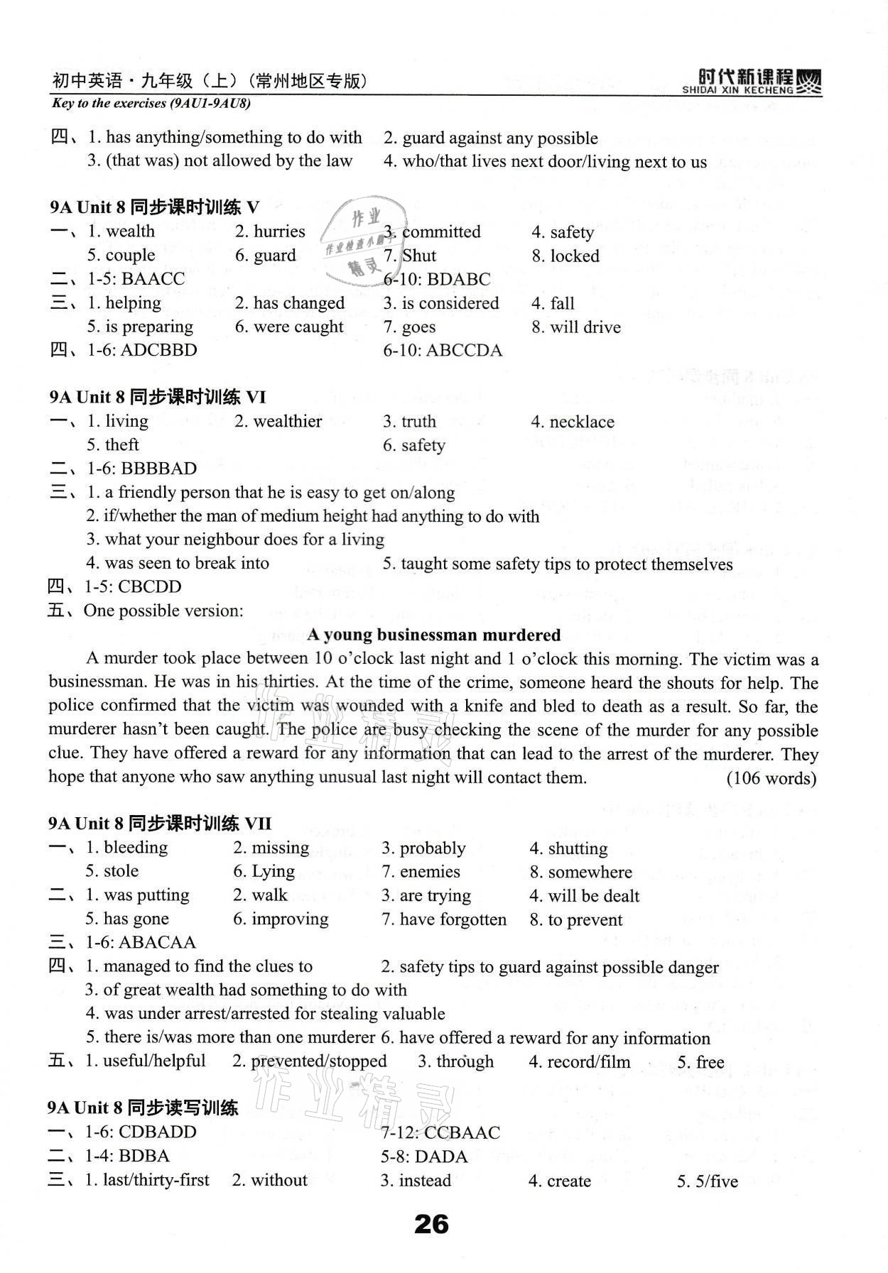 注:目前有些书本章节名称可能整理的还不是很完善,但都是按照顺序排列的,请同学们按照顺序仔细查找。练习册 2021年时代新课程九年级英语上册译林版常州专版 答案主要是用来给同学们做完题方便对答案用的,请勿直接抄袭。
