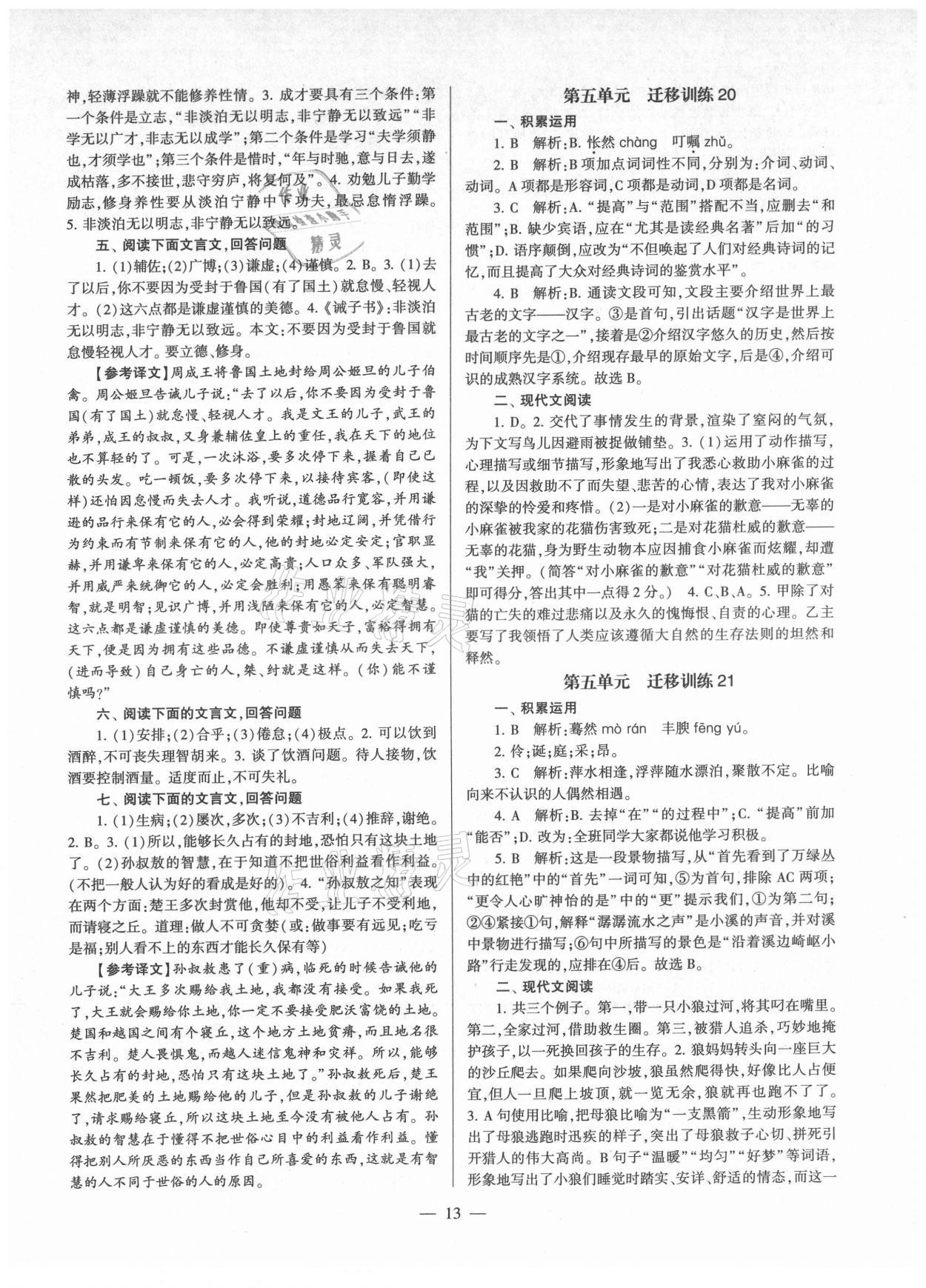注:目前有些书本章节名称可能整理的还不是很完善,但都是按照顺序排列的,请同学们按照顺序仔细查找。练习册 2021年福建省初中语文同步全程导学七年级上册人教版 答案主要是用来给同学们做完题方便对答案用的,请勿直接抄袭。
