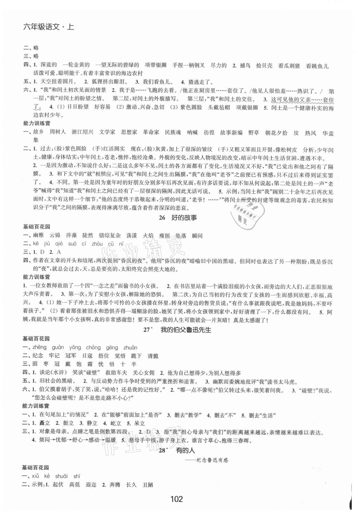 注:目前有些书本章节名称可能整理的还不是很完善,但都是按照顺序排列的,请同学们按照顺序仔细查找。练习册 2021年高效精练提优作业本六年级语文上册人教版 答案主要是用来给同学们做完题方便对答案用的,请勿直接抄袭。