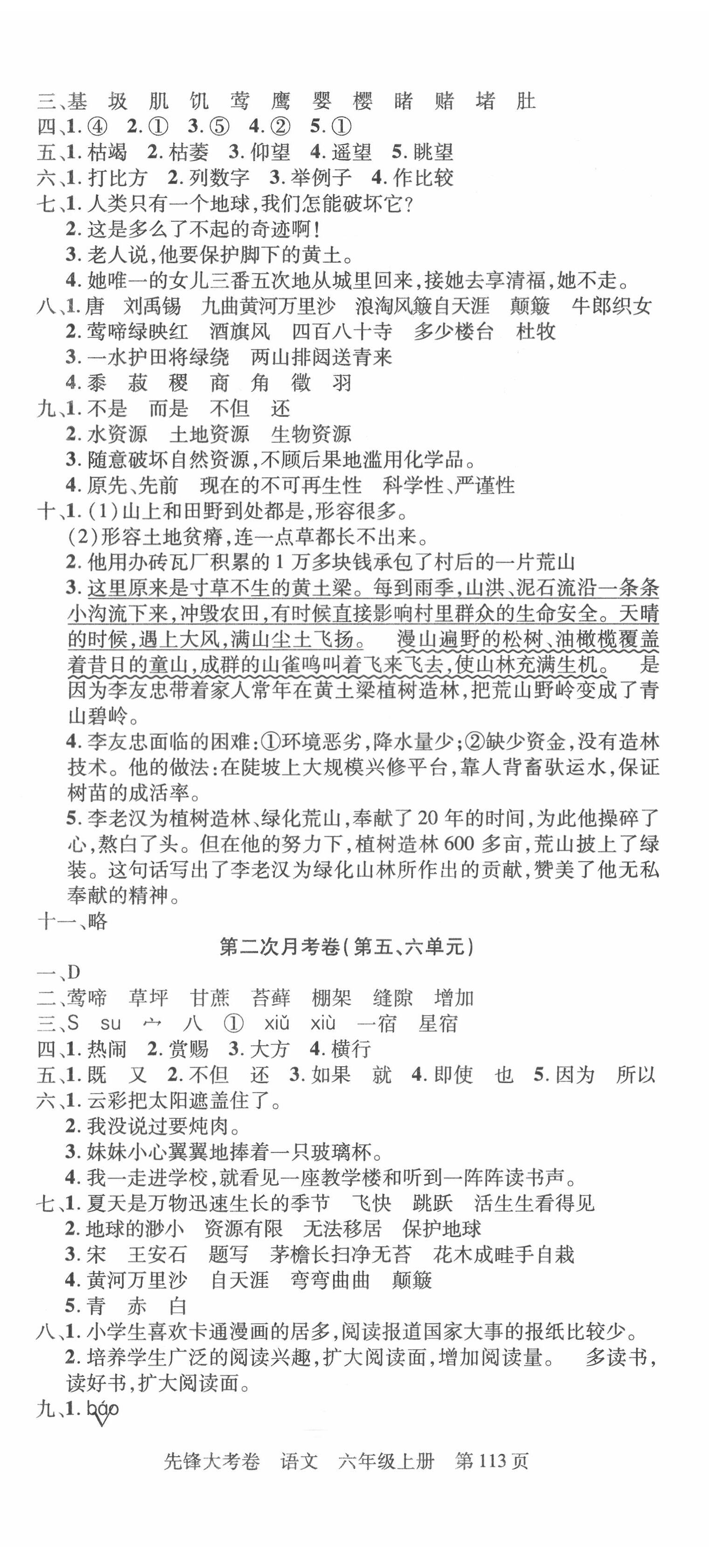 注:目前有些书本章节名称可能整理的还不是很完善,但都是按照顺序排列的,请同学们按照顺序仔细查找。练习册 2021年单元加期末复习先锋大考卷六年级语文上册人教版 答案主要是用来给同学们做完题方便对答案用的,请勿直接抄袭。