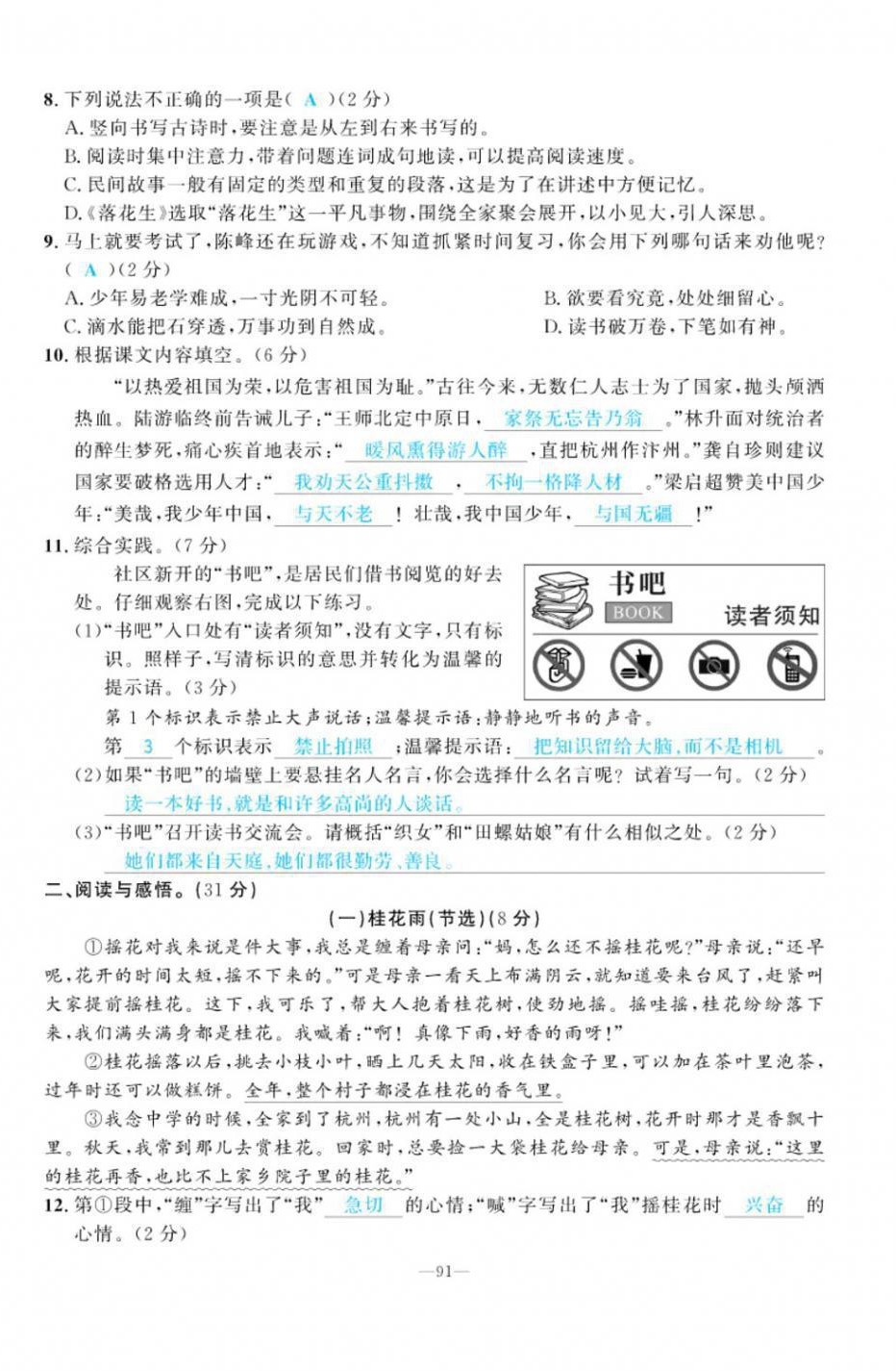 - 参考答案第91页