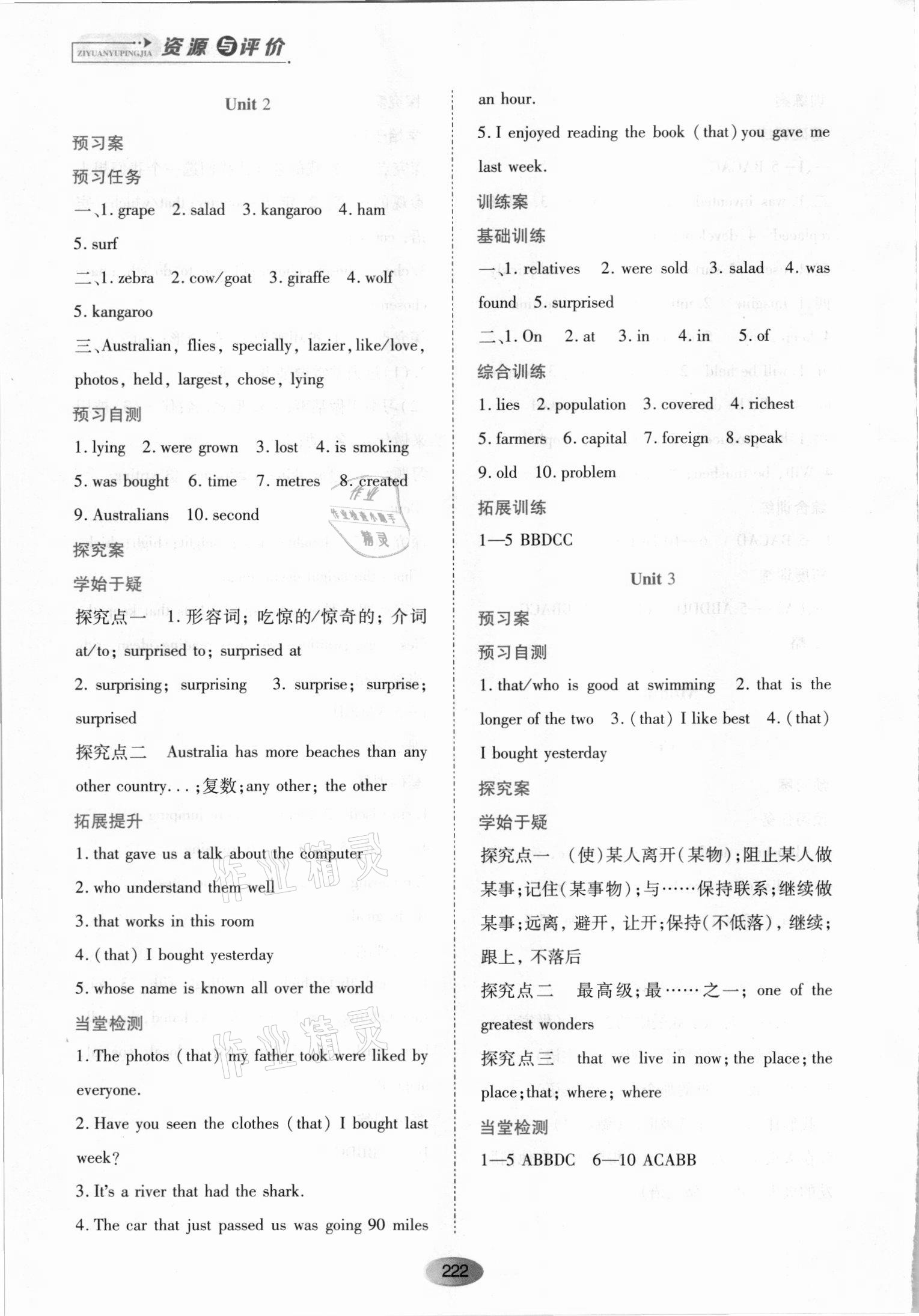 2021年资源与评价黑龙江教育出版社九年级英语上册外研版