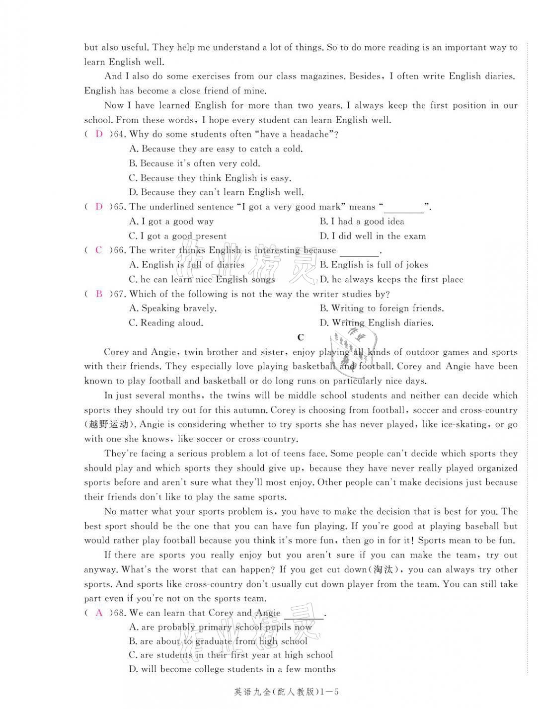注:目前有些书本章节名称可能整理的还不是很完善,但都是按照顺序排列的,请同学们按照顺序仔细查找。练习册 2021年领航新课标练习册九年级英语全一册人教版 答案主要是用来给同学们做完题方便对答案用的,请勿直接抄袭。