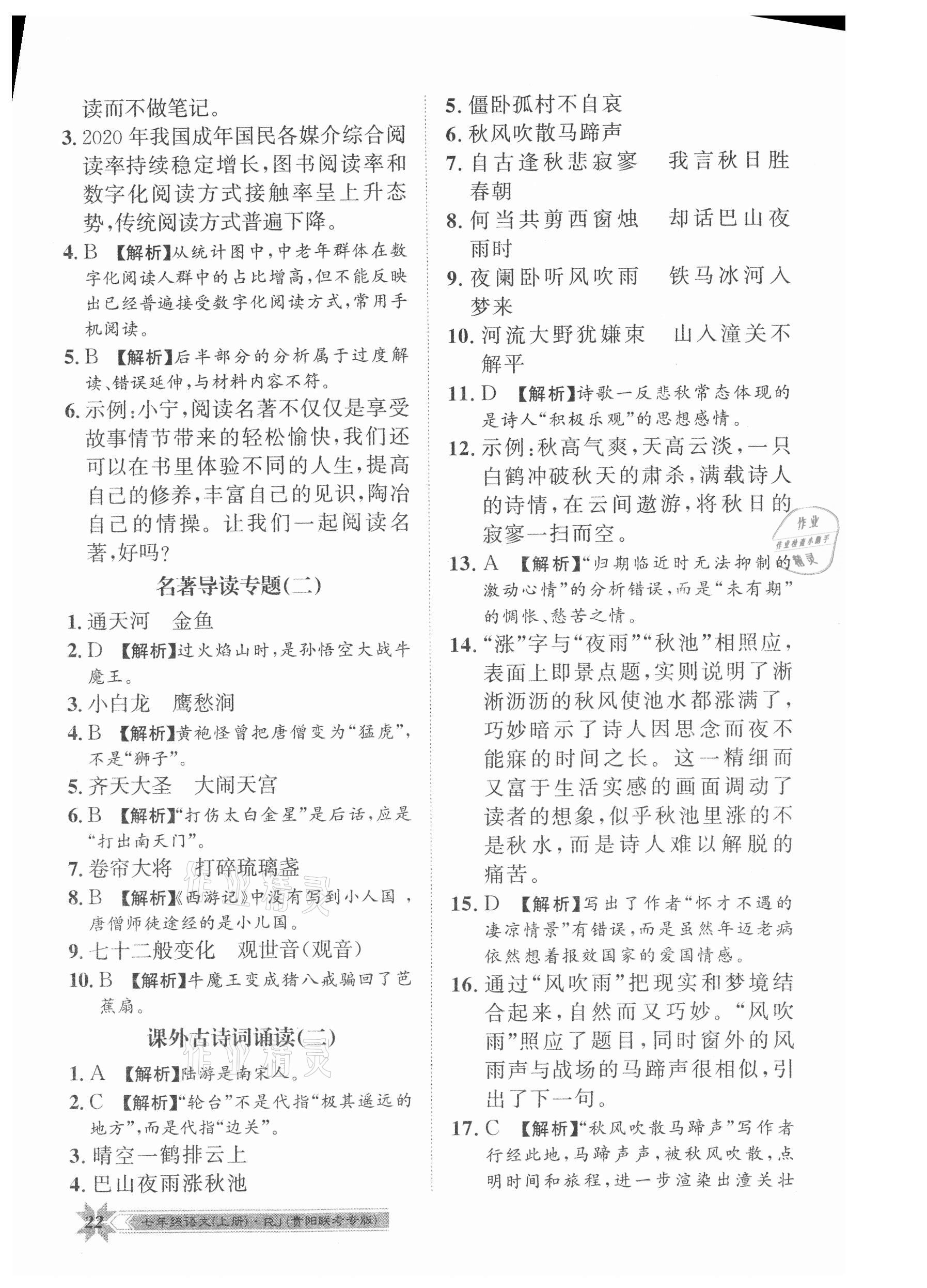 注:目前有些书本章节名称可能整理的还不是很完善,但都是按照顺序排列的,请同学们按照顺序仔细查找。练习册 2021年导学与演练七年级语文上册人教版贵阳专版 答案主要是用来给同学们做完题方便对答案用的,请勿直接抄袭。