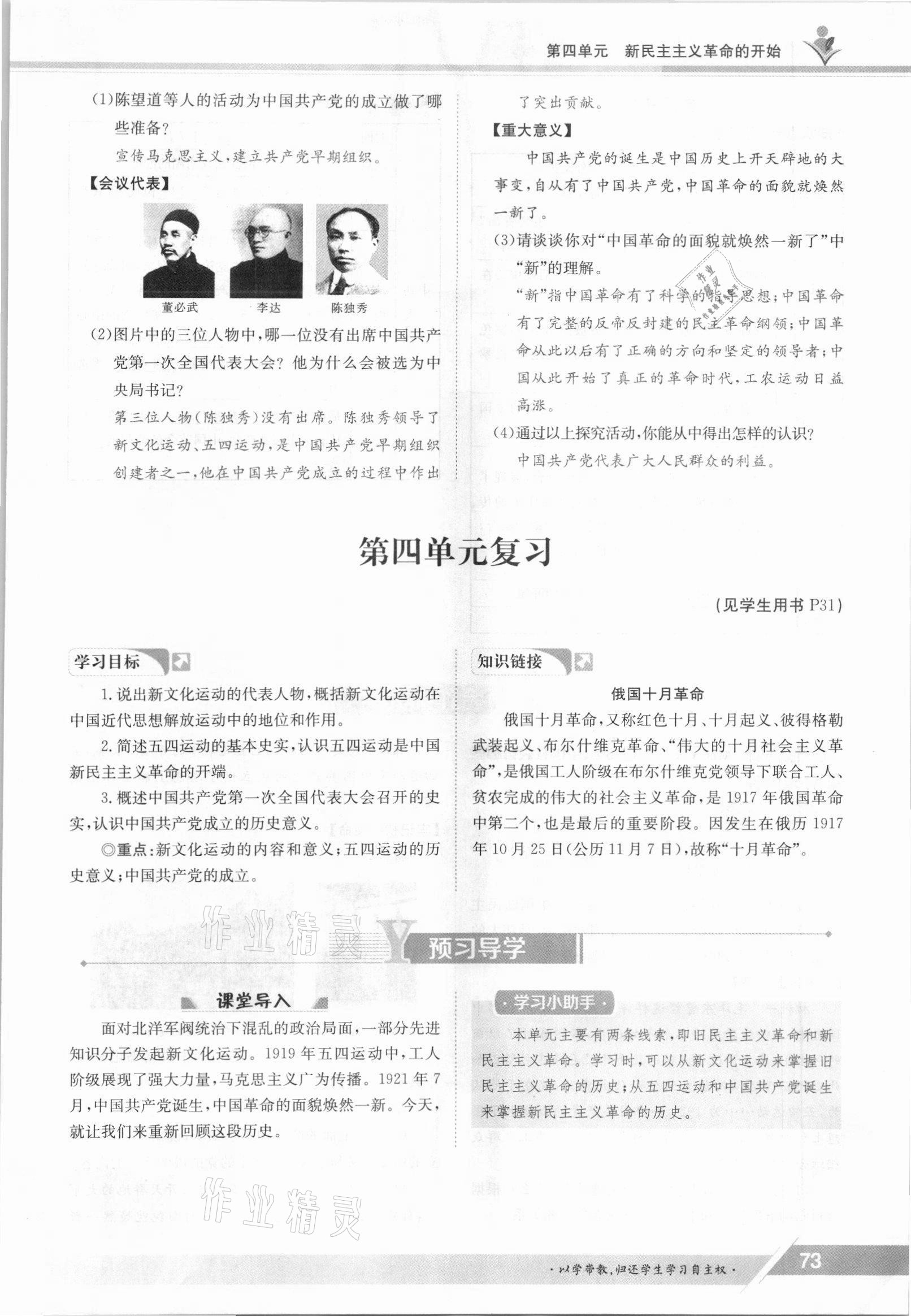 注:目前有些书本章节名称可能整理的还不是很完善,但都是按照顺序排列的,请同学们按照顺序仔细查找。练习册 2021年三段六步导学测评八年级历史上册人教版 答案主要是用来给同学们做完题方便对答案用的,请勿直接抄袭。