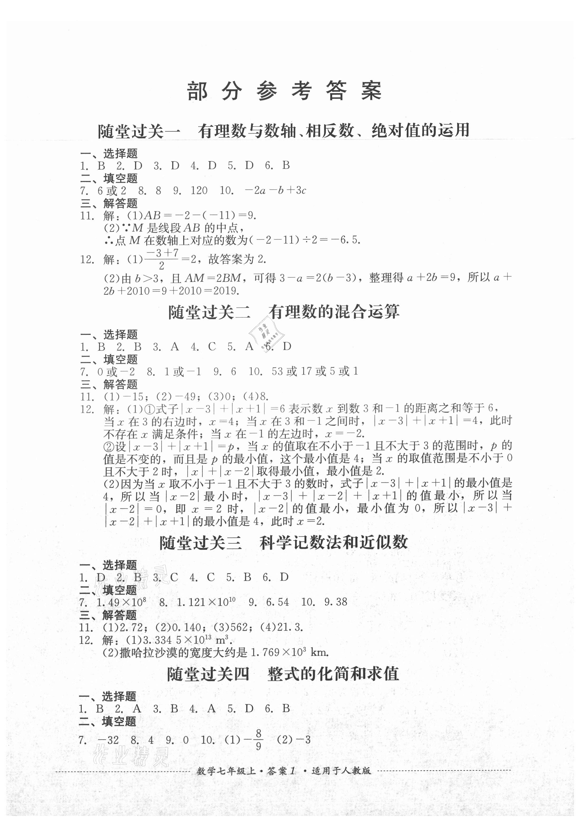注:目前有些书本章节名称可能整理的还不是很完善,但都是按照顺序排列的,请同学们按照顺序仔细查找。练习册 2021年单元测试四川教育出版社七年级数学上册人教版 答案主要是用来给同学们做完题方便对答案用的,请勿直接抄袭。