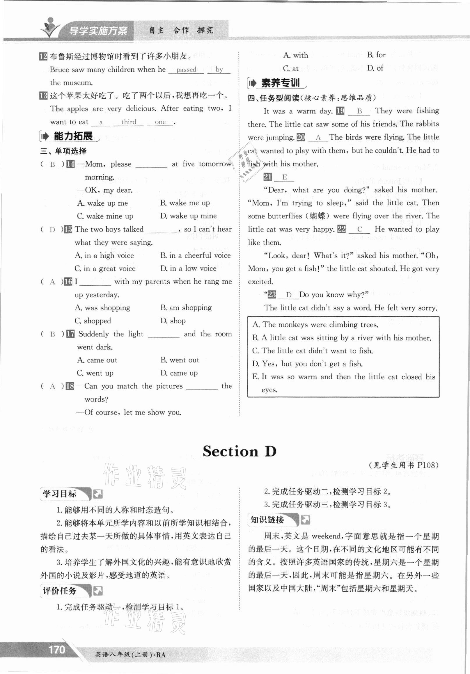 注:目前有些书本章节名称可能整理的还不是很完善,但都是按照顺序排列的,请同学们按照顺序仔细查找。练习册 2021年三段六步导学测评八年级英语上册仁爱版 答案主要是用来给同学们做完题方便对答案用的,请勿直接抄袭。