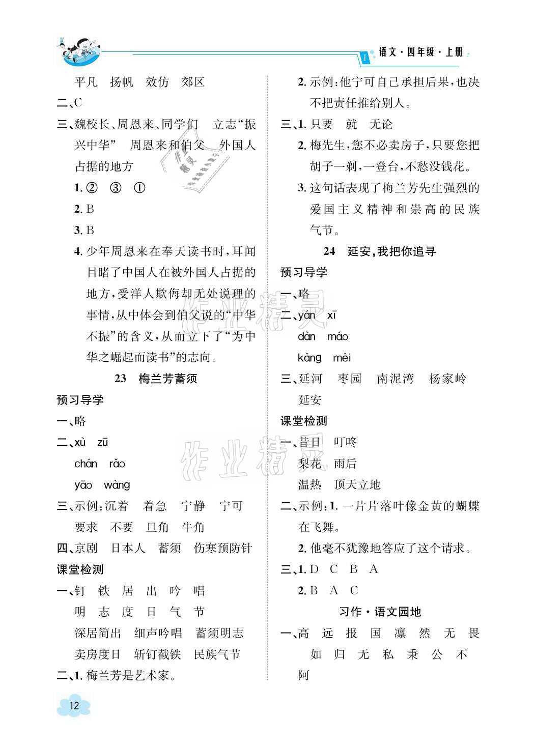 注:目前有些书本章节名称可能整理的还不是很完善,但都是按照顺序排列的,请同学们按照顺序仔细查找。练习册 2021年三段六步导学案四年级语文上册人教版 答案主要是用来给同学们做完题方便对答案用的,请勿直接抄袭。