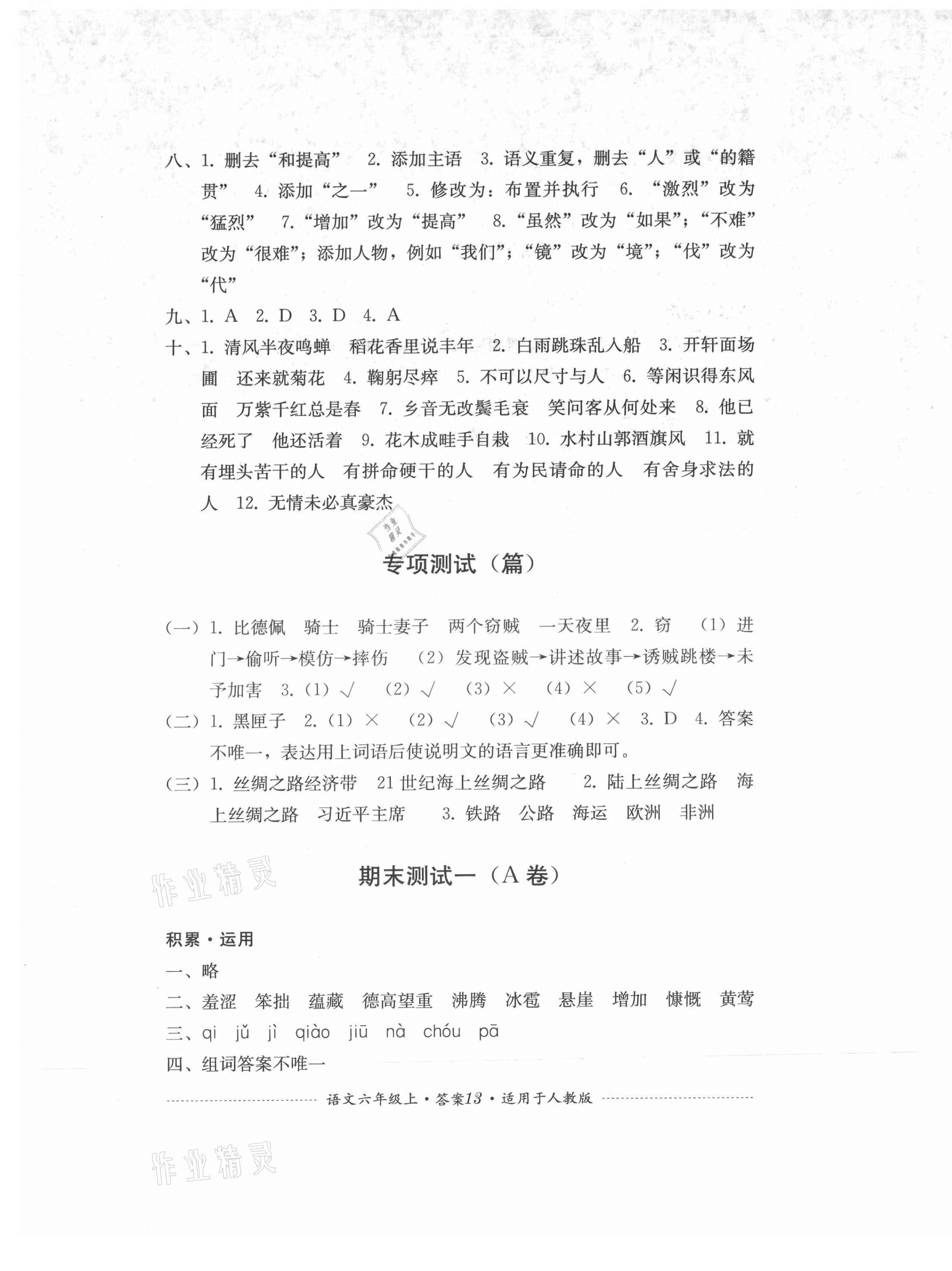 注:目前有些书本章节名称可能整理的还不是很完善,但都是按照顺序排列的,请同学们按照顺序仔细查找。练习册 2021年单元测试四川教育出版社六年级语文上册人教版 答案主要是用来给同学们做完题方便对答案用的,请勿直接抄袭。