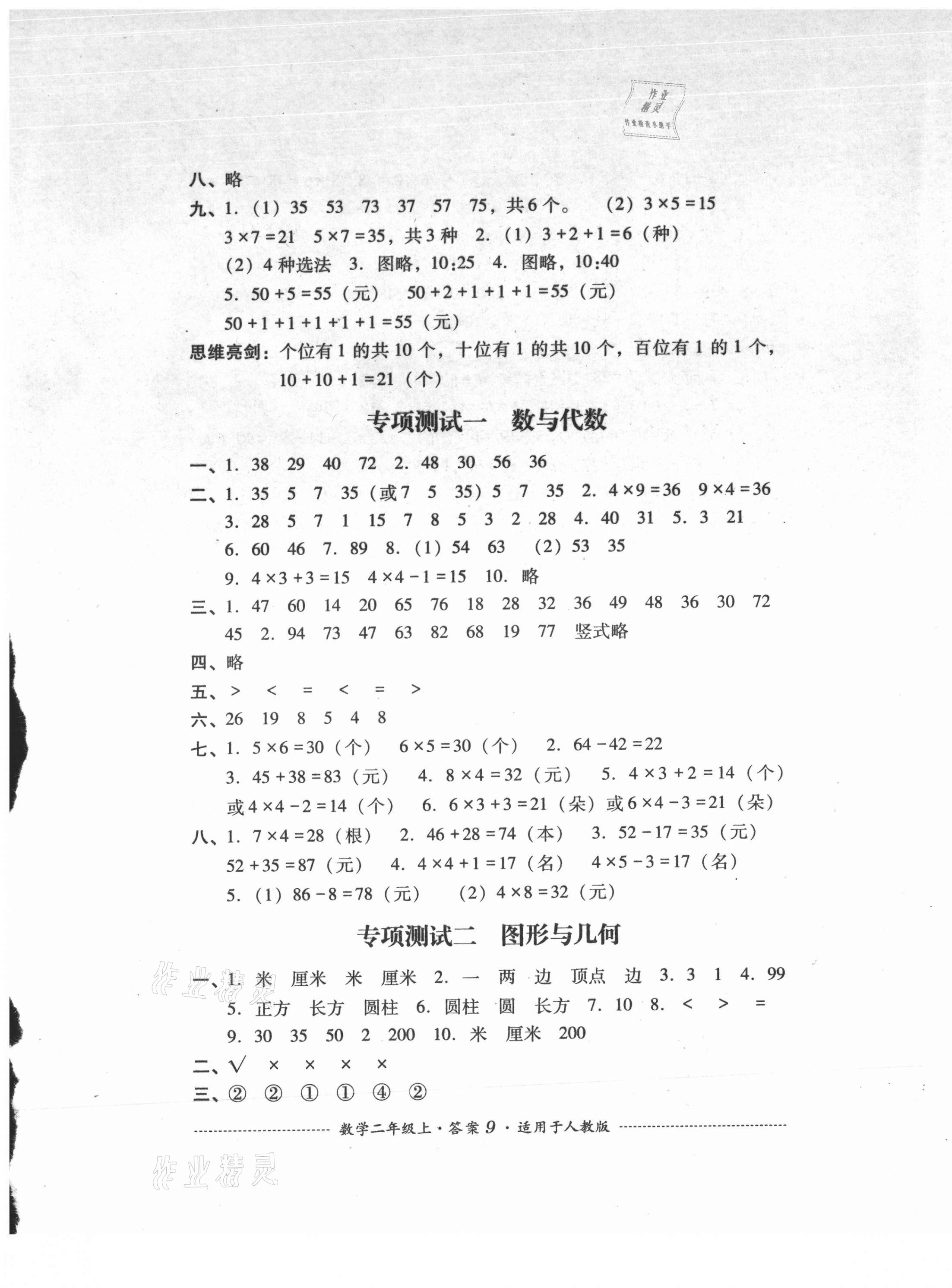 注:目前有些书本章节名称可能整理的还不是很完善,但都是按照顺序排列的,请同学们按照顺序仔细查找。练习册 2021年单元测试四川教育出版社二年级数学上册人教版 答案主要是用来给同学们做完题方便对答案用的,请勿直接抄袭。