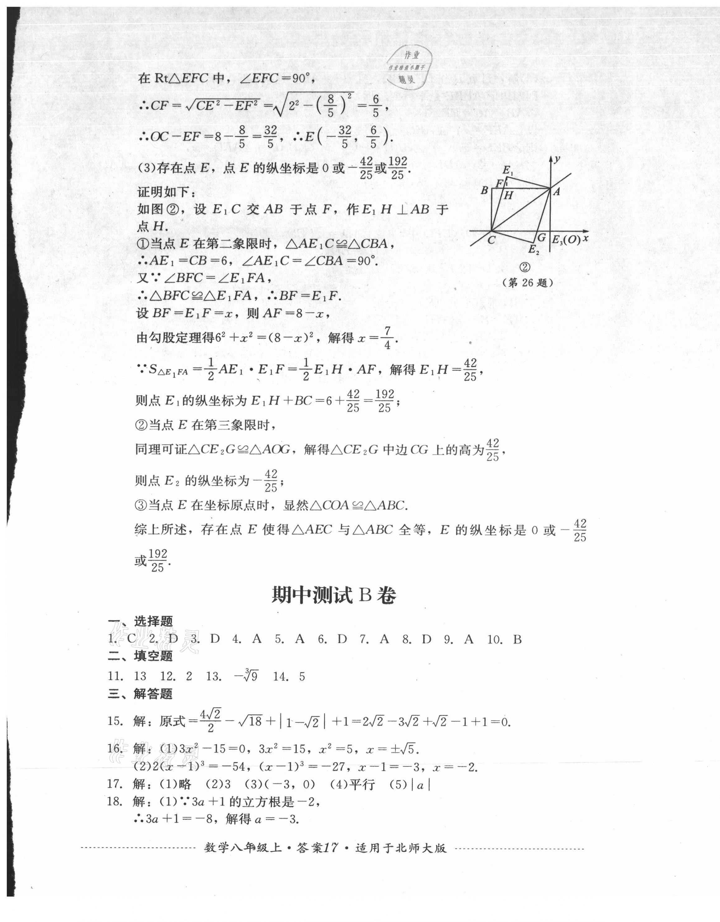 注:目前有些书本章节名称可能整理的还不是很完善,但都是按照顺序排列的,请同学们按照顺序仔细查找。练习册 2021年单元测试四川教育出版社八年级数学上册北师大版 答案主要是用来给同学们做完题方便对答案用的,请勿直接抄袭。
