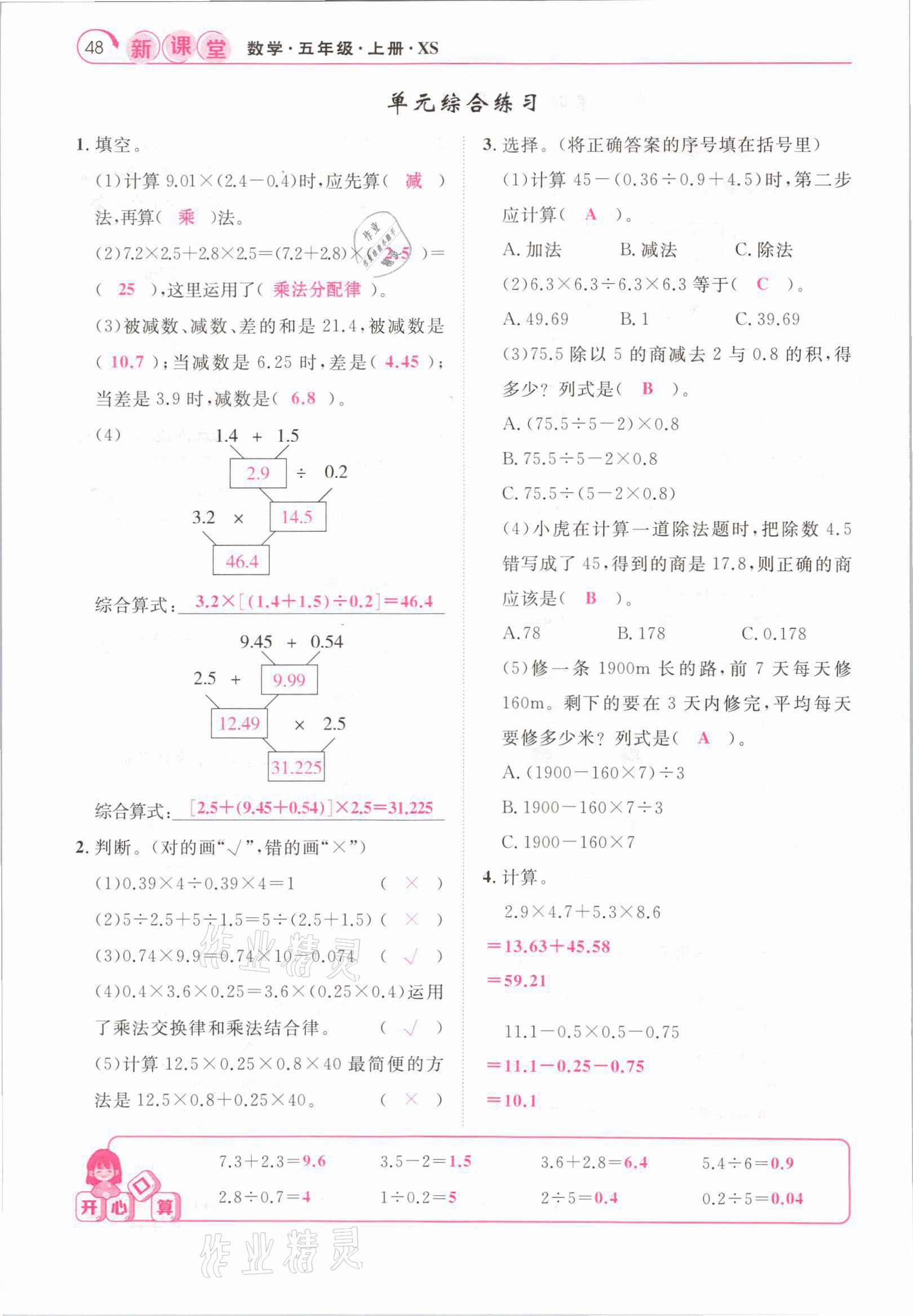 注:目前有些书本章节名称可能整理的还不是很完善,但都是按照顺序排列的,请同学们按照顺序仔细查找。练习册 2021年启航新课堂五年级数学上册西师大版 答案主要是用来给同学们做完题方便对答案用的,请勿直接抄袭。