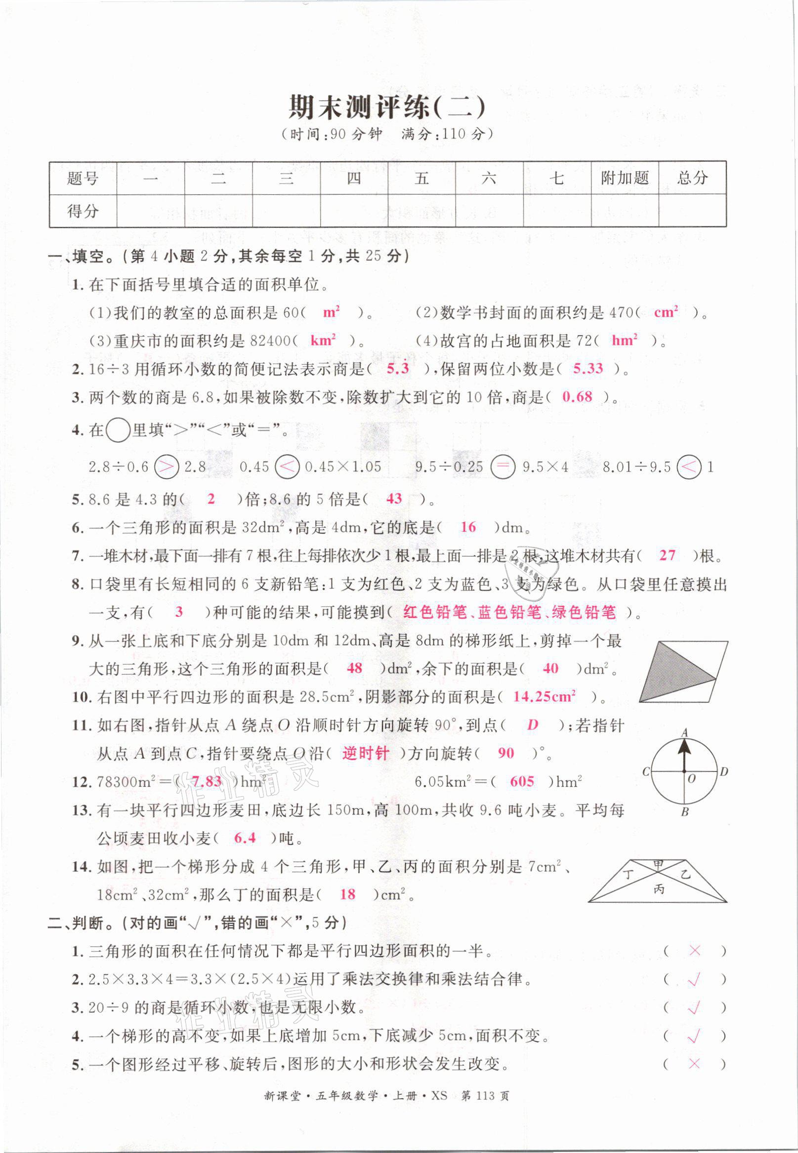 注:目前有些书本章节名称可能整理的还不是很完善,但都是按照顺序排列的,请同学们按照顺序仔细查找。练习册 2021年启航新课堂五年级数学上册西师大版 答案主要是用来给同学们做完题方便对答案用的,请勿直接抄袭。