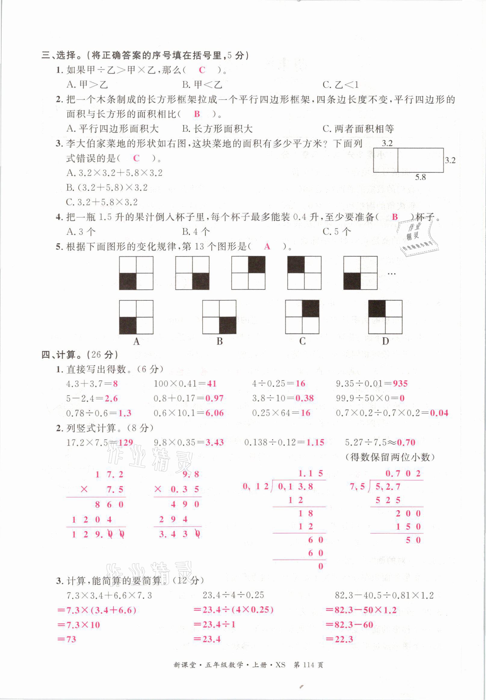 注:目前有些书本章节名称可能整理的还不是很完善,但都是按照顺序排列的,请同学们按照顺序仔细查找。练习册 2021年启航新课堂五年级数学上册西师大版 答案主要是用来给同学们做完题方便对答案用的,请勿直接抄袭。