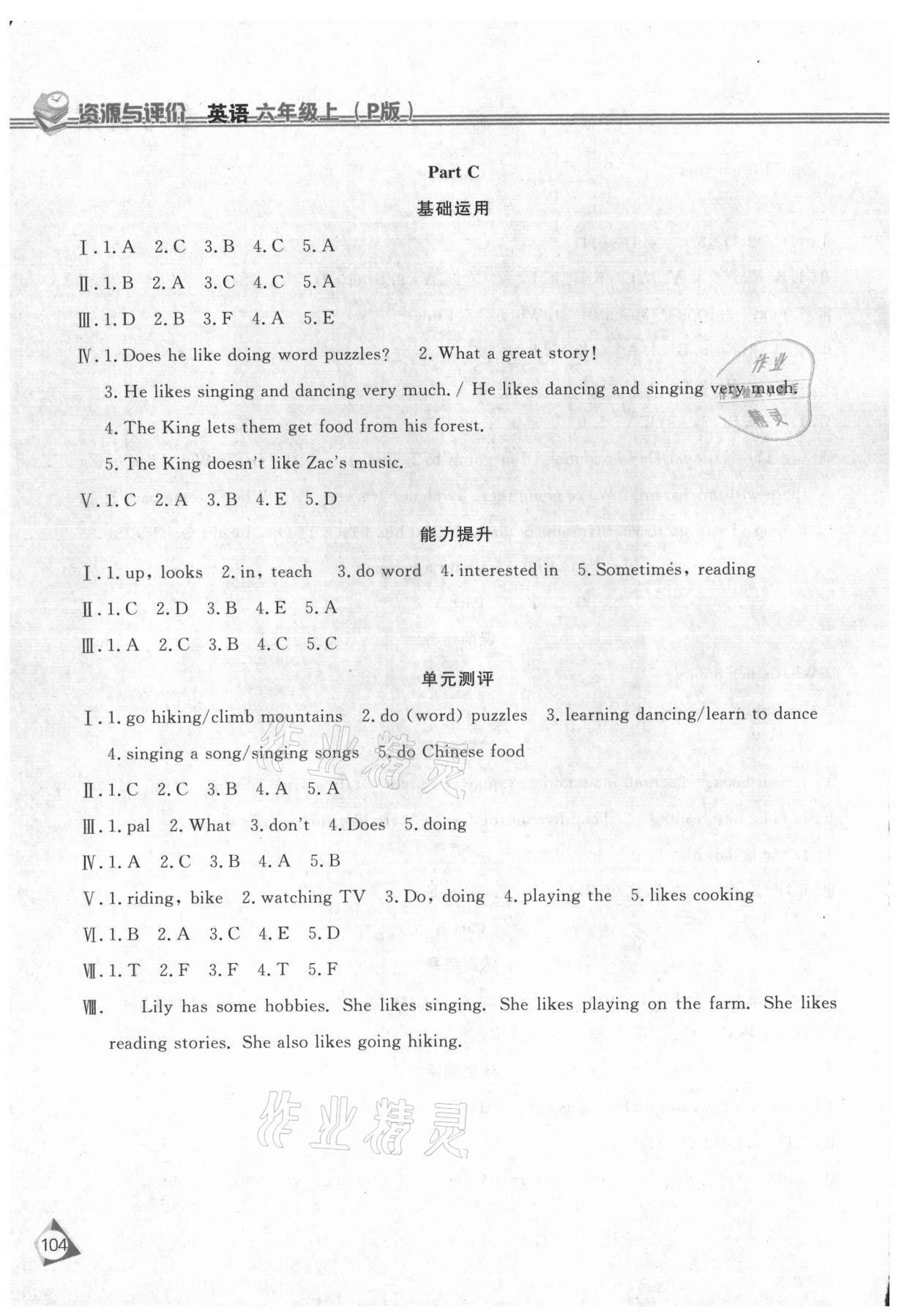 注:目前有些书本章节名称可能整理的还不是很完善,但都是按照顺序排列的,请同学们按照顺序仔细查找。练习册 2021年资源与评价六年级英语上册人教版P版 答案主要是用来给同学们做完题方便对答案用的,请勿直接抄袭。
