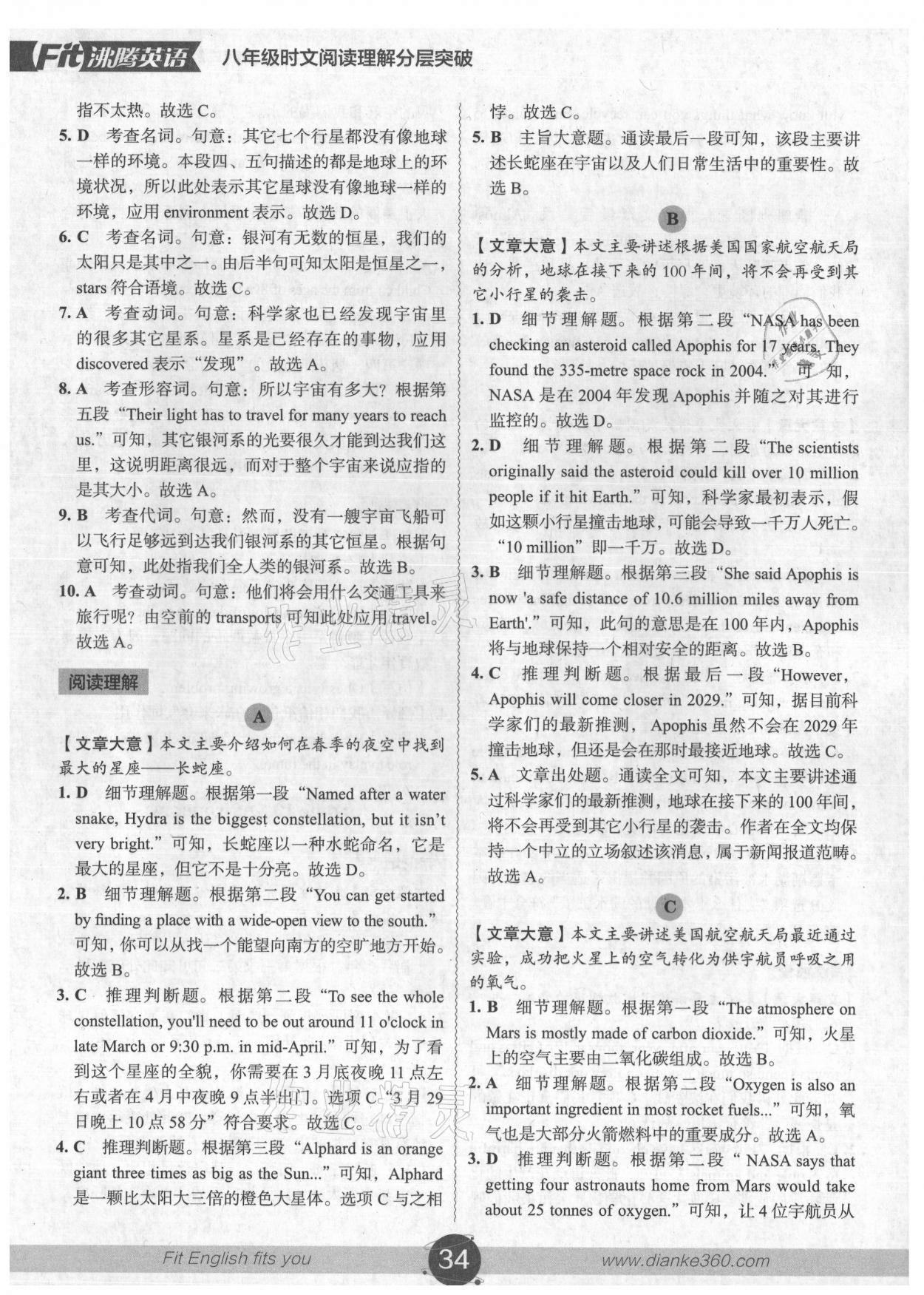 注:目前有些书本章节名称可能整理的还不是很完善,但都是按照顺序排列的,请同学们按照顺序仔细查找。练习册 2021年沸腾英语时文阅读理解分层突破八年级广州专版 答案主要是用来给同学们做完题方便对答案用的,请勿直接抄袭。