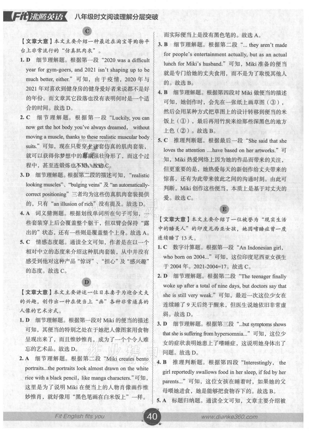 注:目前有些书本章节名称可能整理的还不是很完善,但都是按照顺序排列的,请同学们按照顺序仔细查找。练习册 2021年沸腾英语时文阅读理解分层突破八年级广州专版 答案主要是用来给同学们做完题方便对答案用的,请勿直接抄袭。