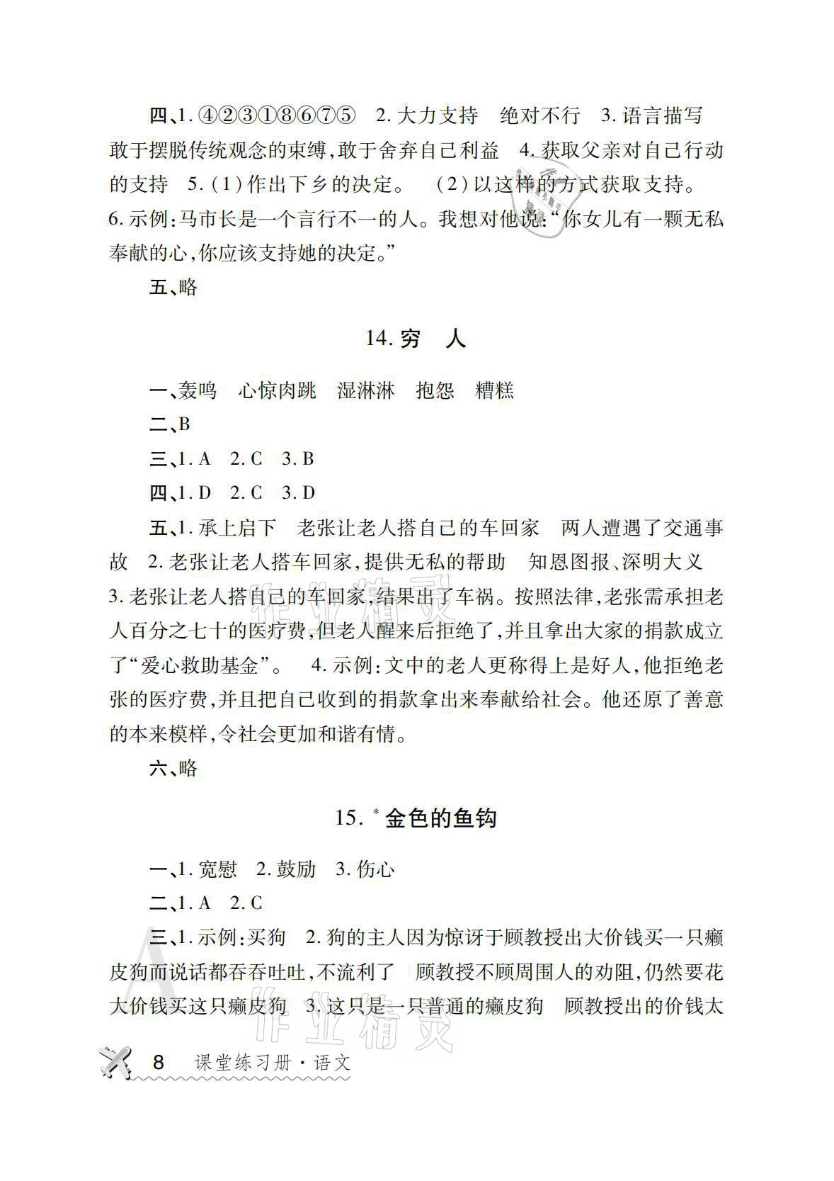 注:目前有些书本章节名称可能整理的还不是很完善,但都是按照顺序排列的,请同学们按照顺序仔细查找。练习册 2021年课堂练习册六年级语文上册人教版A 答案主要是用来给同学们做完题方便对答案用的,请勿直接抄袭。