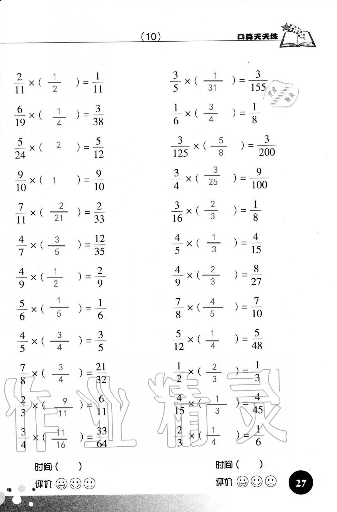 2021年口算天天练浙江科学技术出版社六年级数学上册人教版