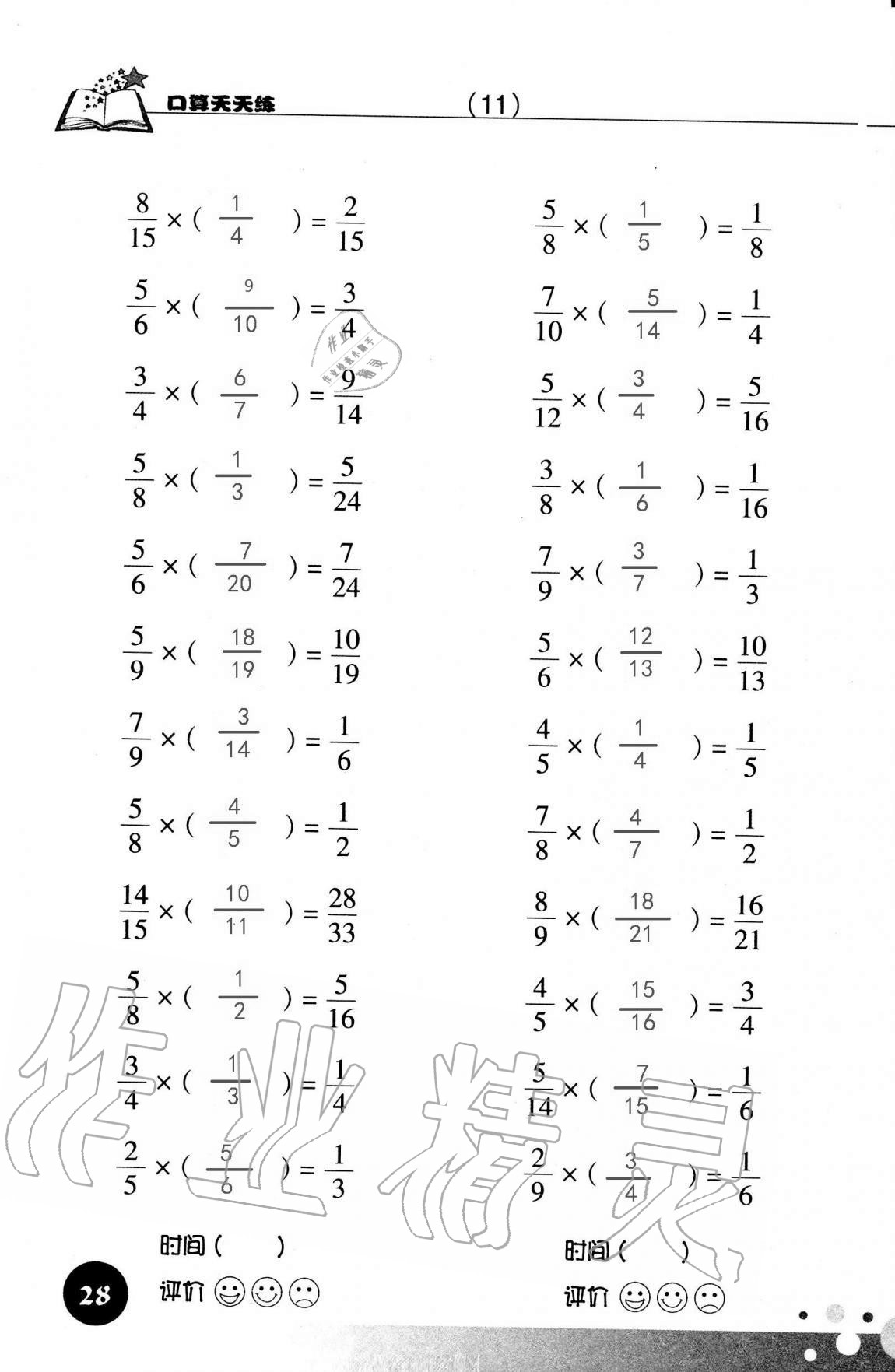 2021年口算天天练浙江科学技术出版社六年级数学上册人教版
