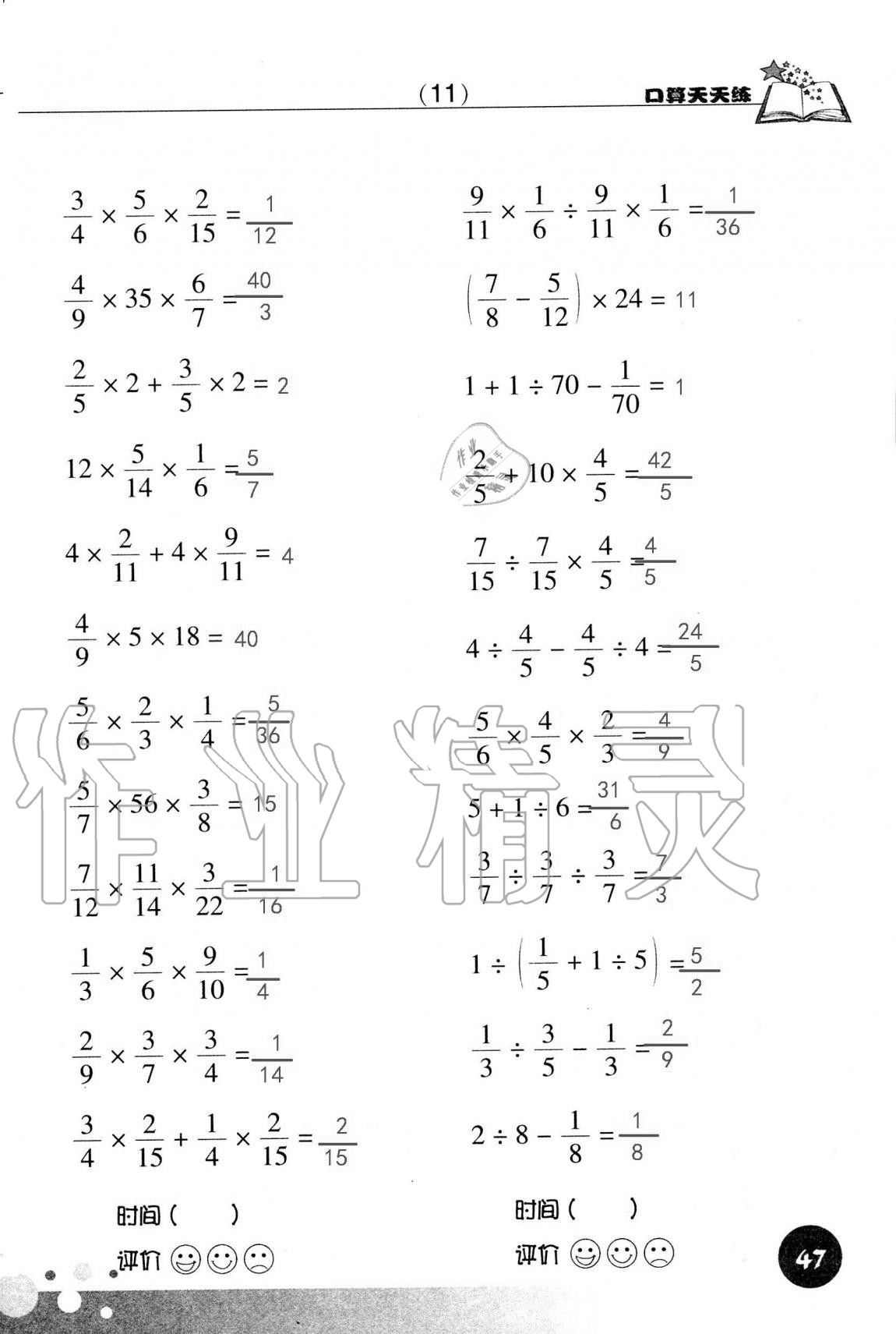 2021年口算天天练浙江科学技术出版社六年级数学上册人教版