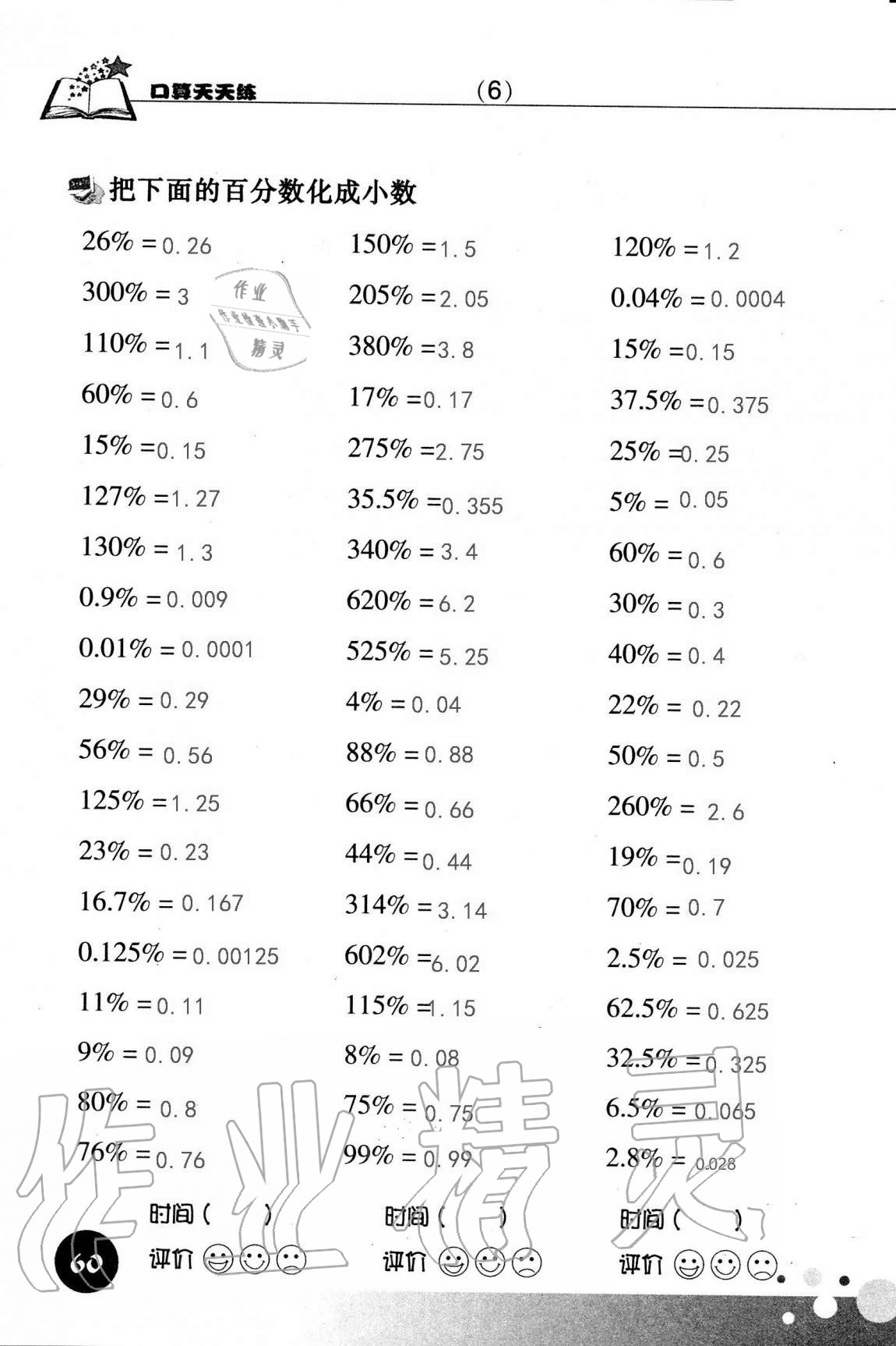 2021年口算天天练浙江科学技术出版社六年级数学上册人教版
