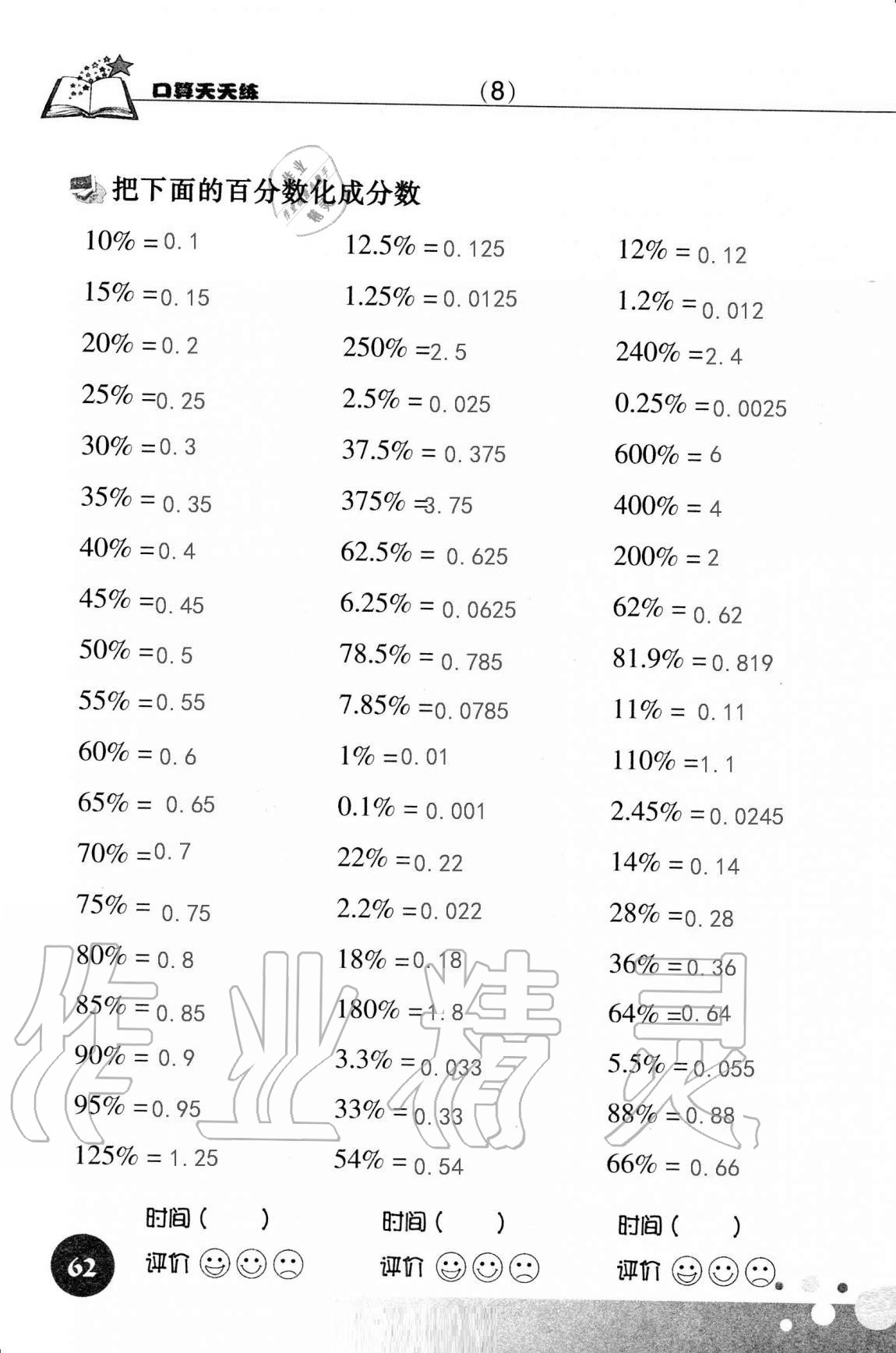 2021年口算天天练浙江科学技术出版社六年级数学上册人教版