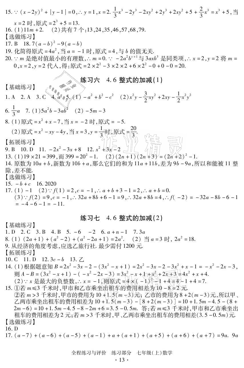 注:目前有些书本章节名称可能整理的还不是很完善,但都是按照顺序排列的,请同学们按照顺序仔细查找。练习册 2021年全程练习与评价七年级数学上册浙教版 答案主要是用来给同学们做完题方便对答案用的,请勿直接抄袭。