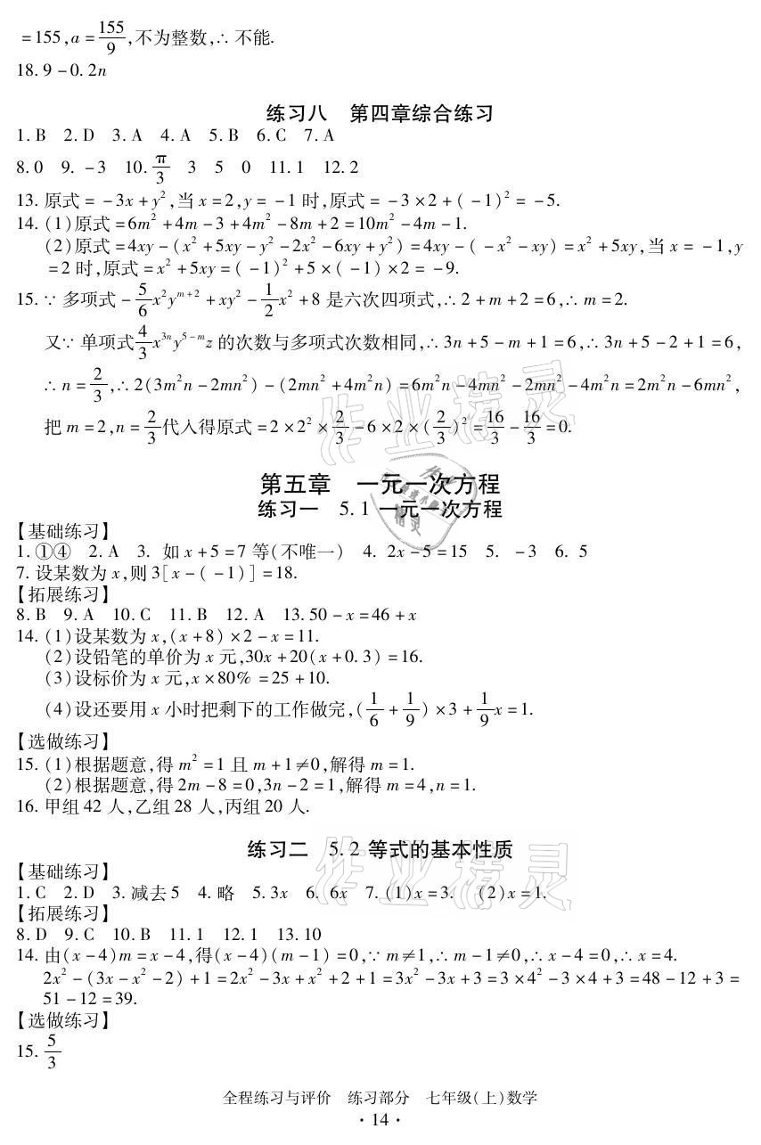 注:目前有些书本章节名称可能整理的还不是很完善,但都是按照顺序排列的,请同学们按照顺序仔细查找。练习册 2021年全程练习与评价七年级数学上册浙教版 答案主要是用来给同学们做完题方便对答案用的,请勿直接抄袭。