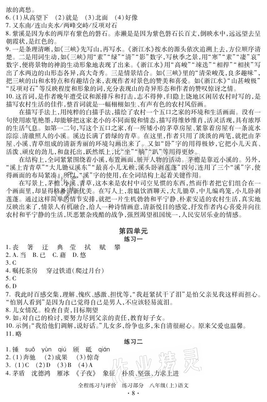 注:目前有些书本章节名称可能整理的还不是很完善,但都是按照顺序排列的,请同学们按照顺序仔细查找。练习册 2021年全程练习与评价八年级语文上册人教版 答案主要是用来给同学们做完题方便对答案用的,请勿直接抄袭。